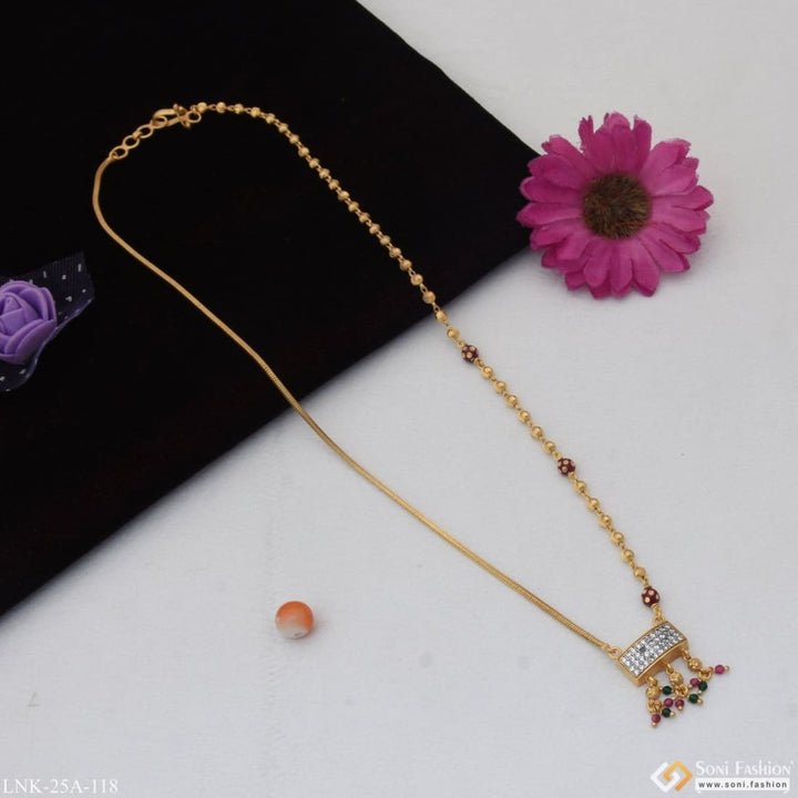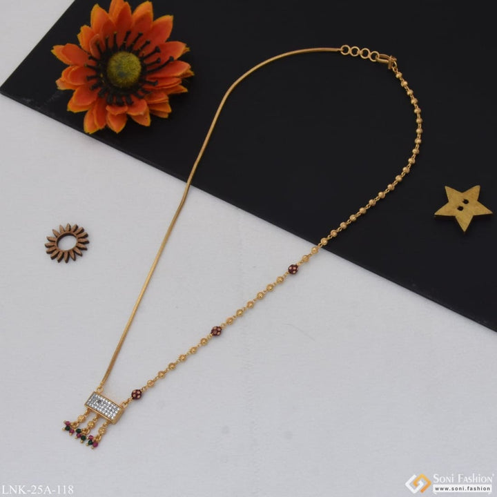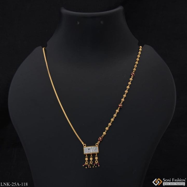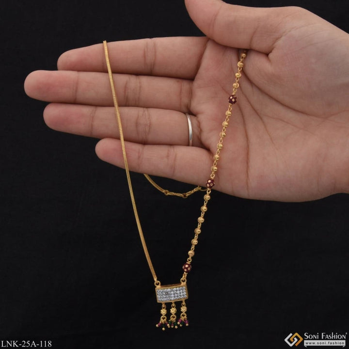 Catch everyone's eye with this 1 gram gold plated necklace featuring a diamond and vintage design. Crafted from high quality brass with elegant texture and rhodium plating, this item is sure to stay fashionable for years to come. Shining with miligram gold and the latest trends, it's perfect for any special occasion.