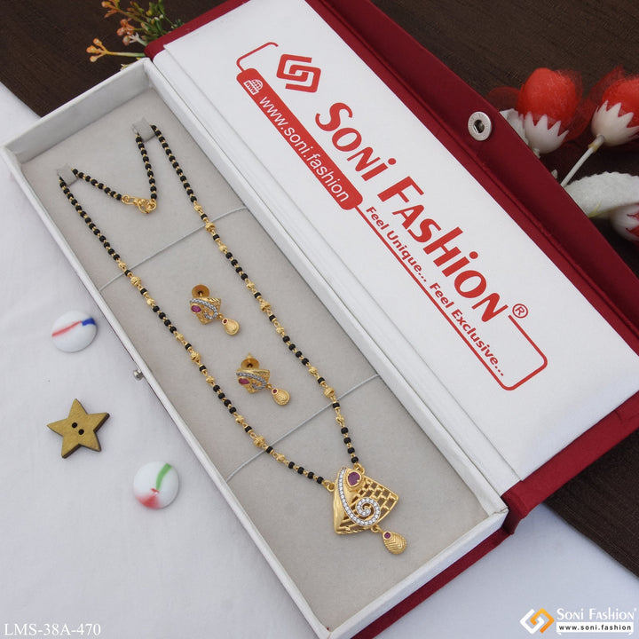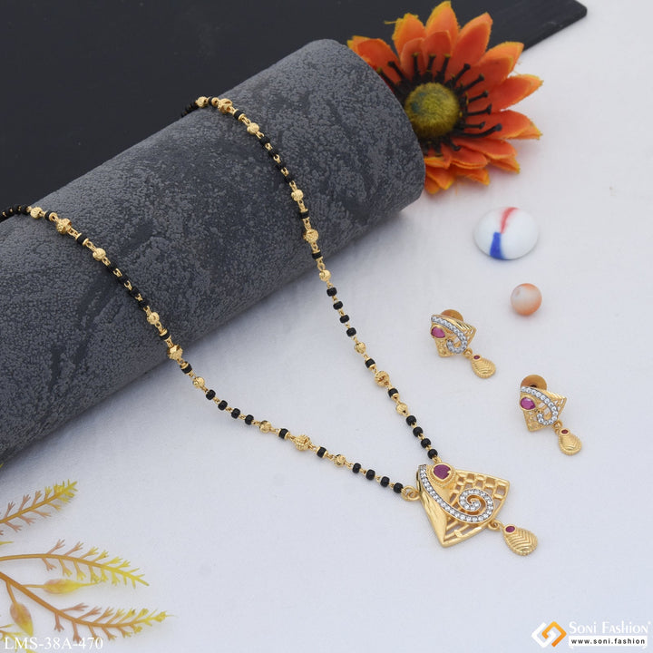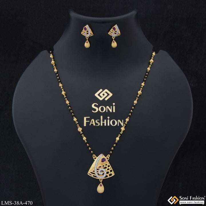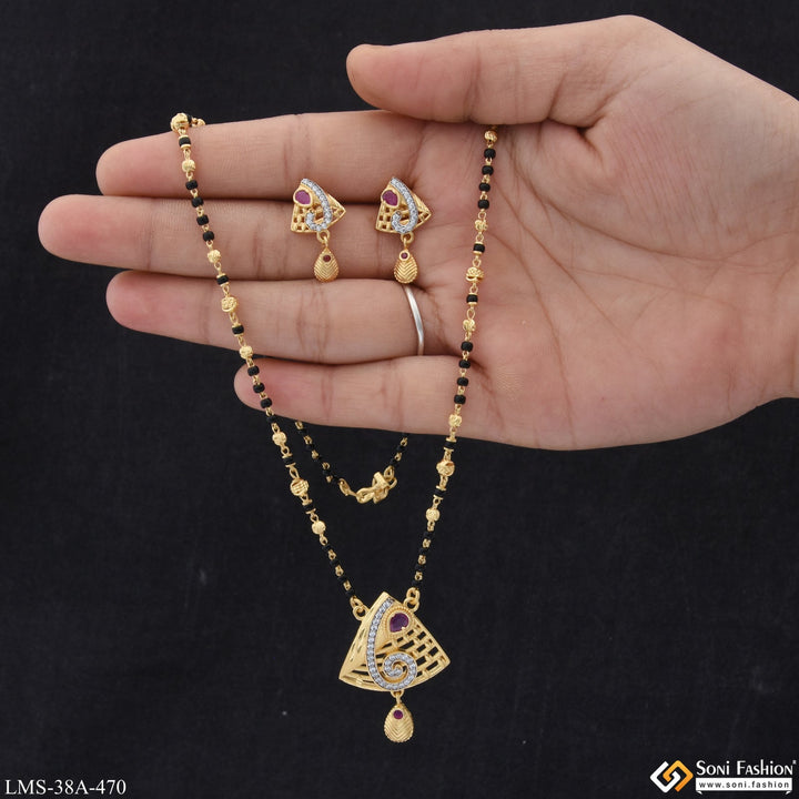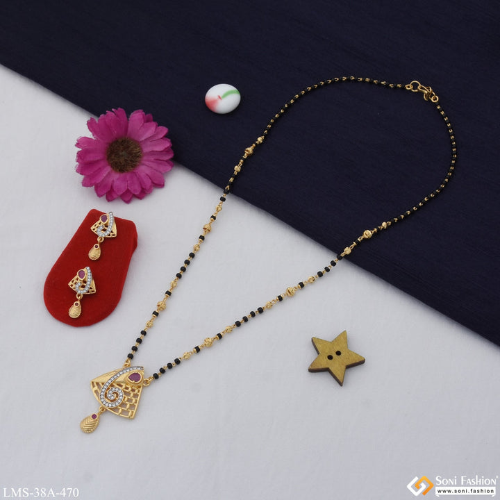 1 Gram Gold Plated with Diamond New Style Mangalsutra Set for Women - Style A470