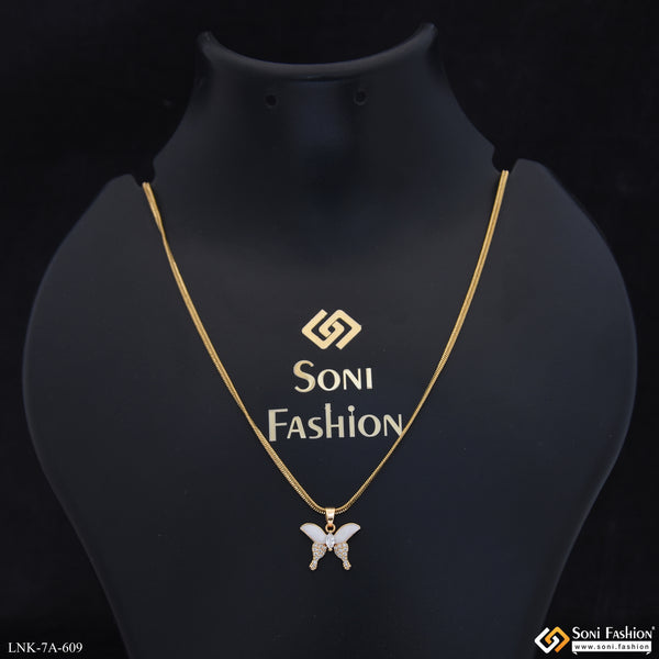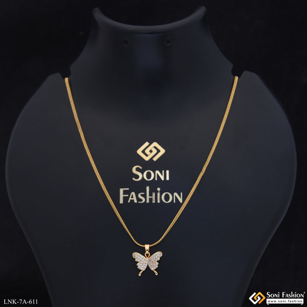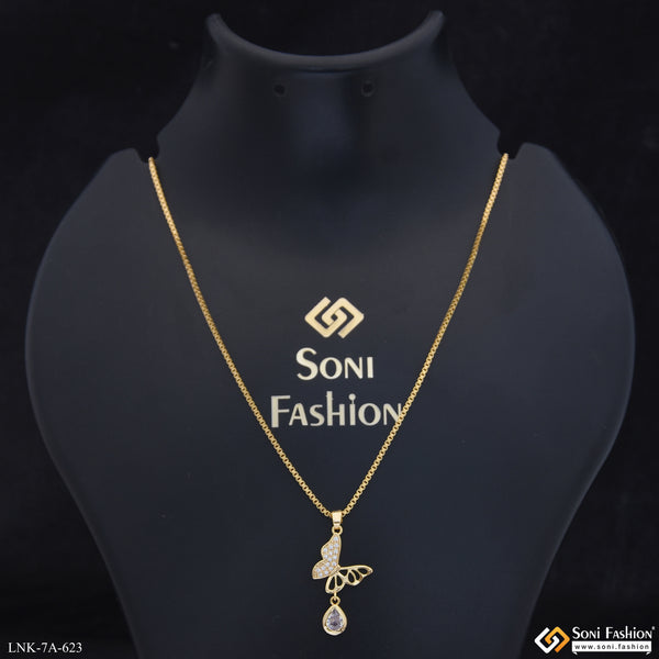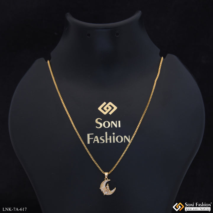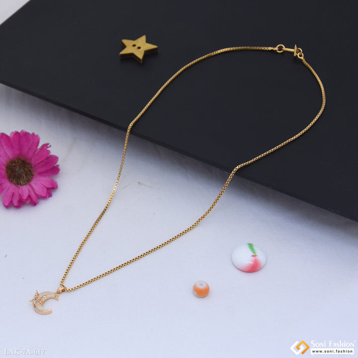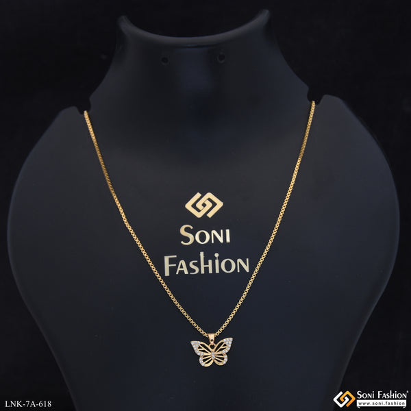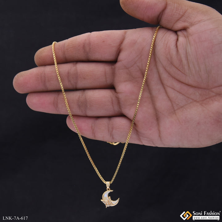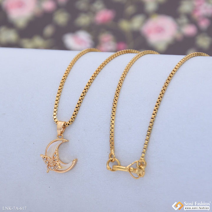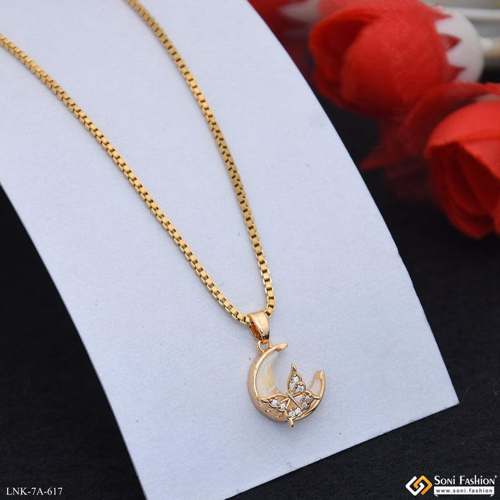 Butterfly On Half Moon Gold Plated Chain Pendant For Ladies - Style A617