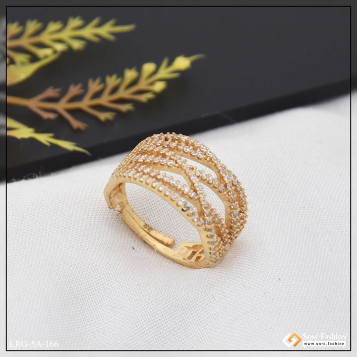 Discover the ultimate in sophistication and elegance with our Finely Detailed Gold Plated Ring for Ladies. The textured design adds a touch of luxury, while the diamond accents bring a hint of sparkle. Made with high-quality brass and featuring a hidden regal plating, this ring is crafted to impress the most discerning of tastes. Upgrade your jewelry collection with this latest trend that will elevate any outfit.
