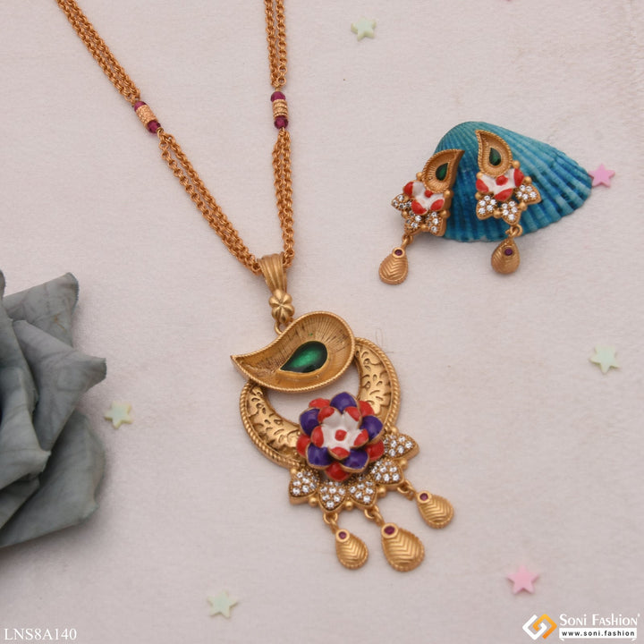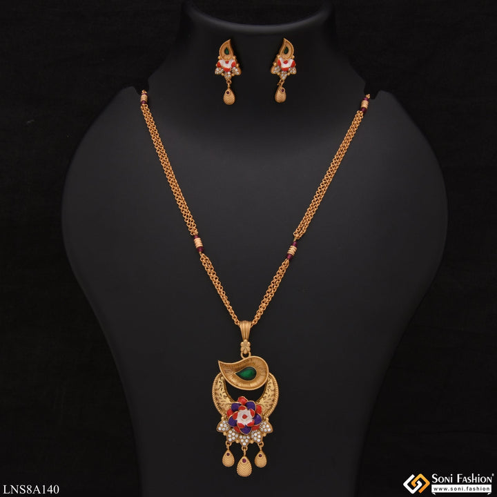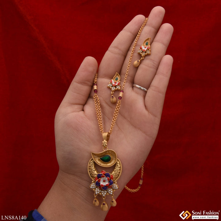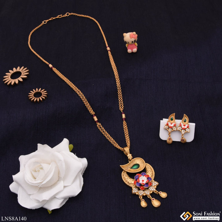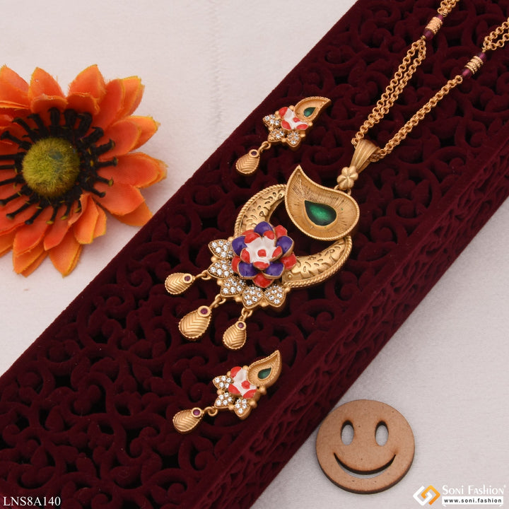 Leaf & Flower with Diamond Sparkling Design Gold Plated Necklace Set - Style LNSA140