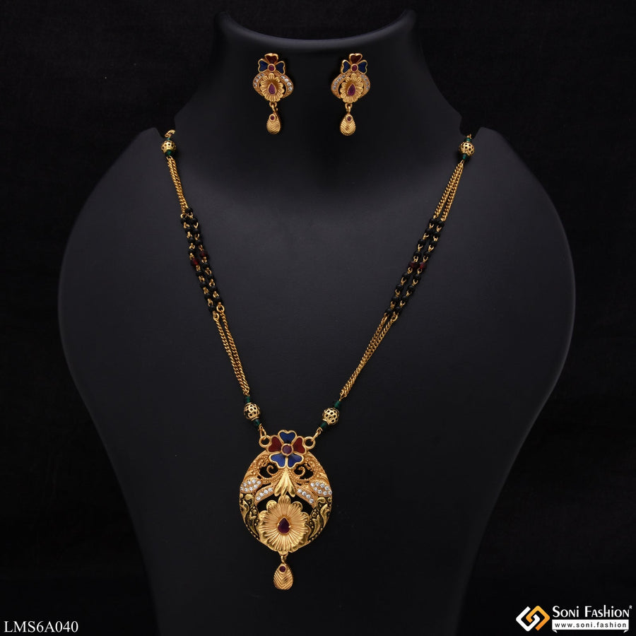 1 Gram Gold Plated Decorative Design Mangalsutra Set for Women - Style A456