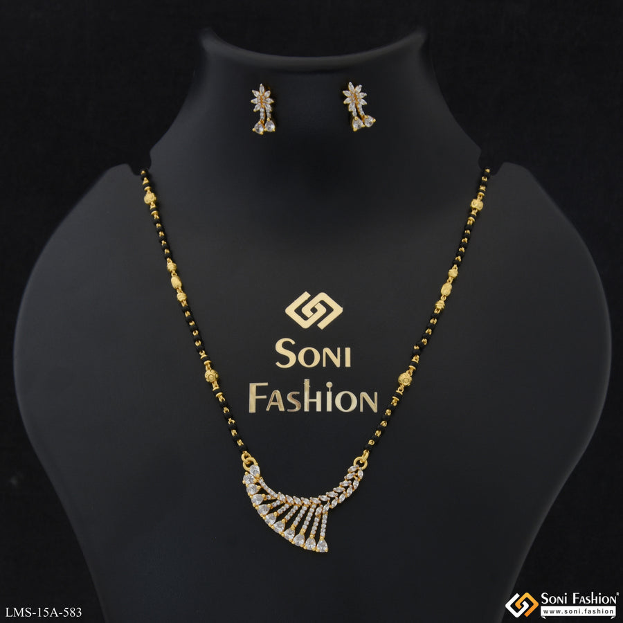 1 Gram Gold Plated with Diamond New Style Mangalsutra Set for Women - Style A451