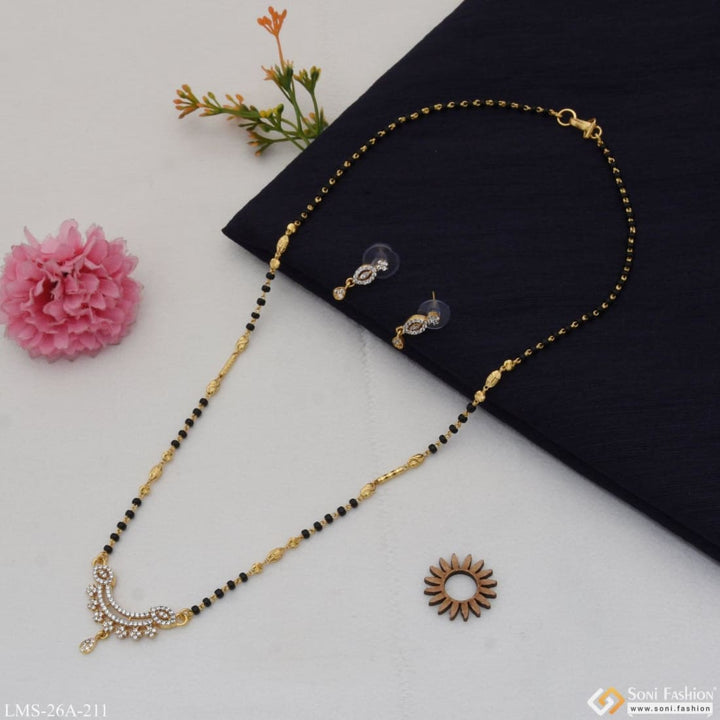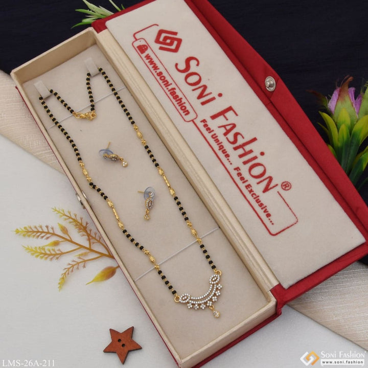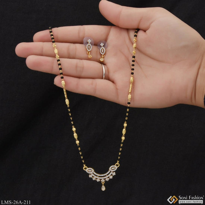 1 Gram Gold Plated With Diamond Casual Design Mangalsutra Set For Women - Style A211