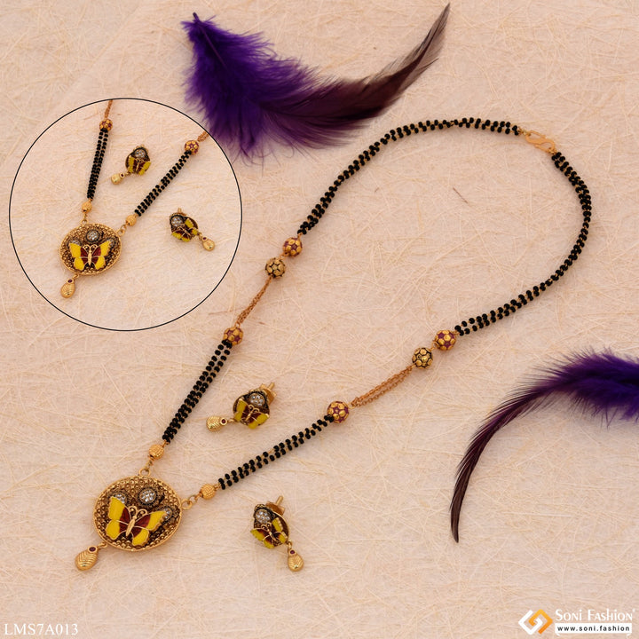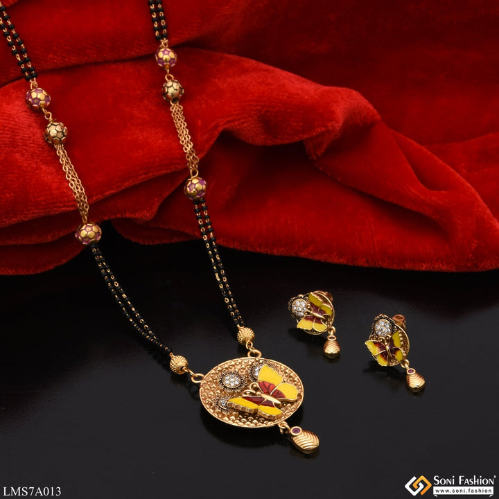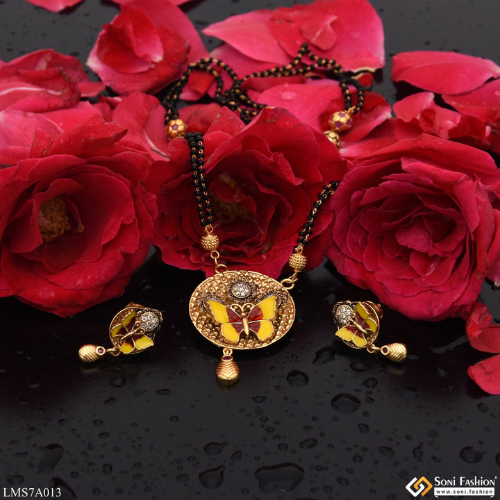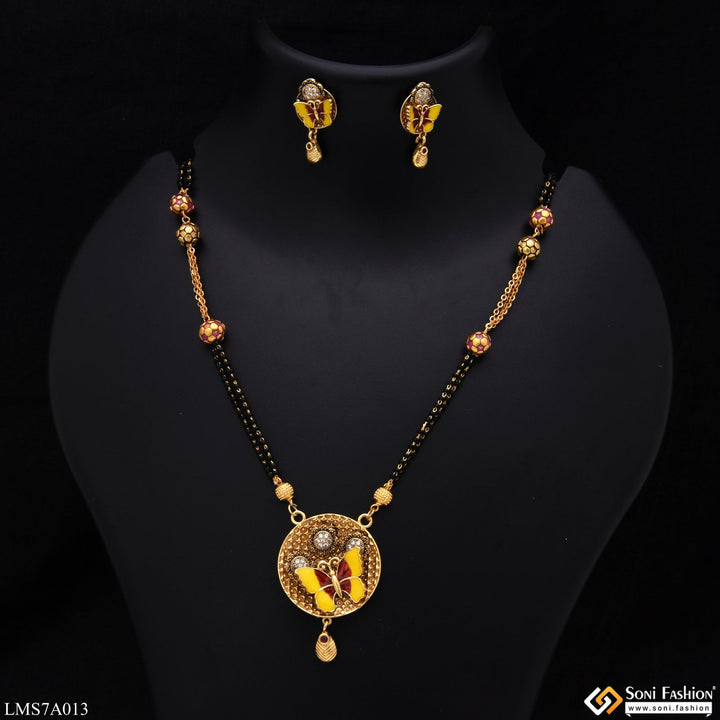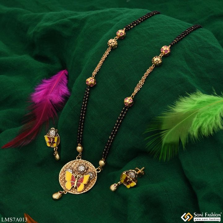 Butterfly With Diamond Gold Plated Mangalsutra Set For Women - Style Lmsa013