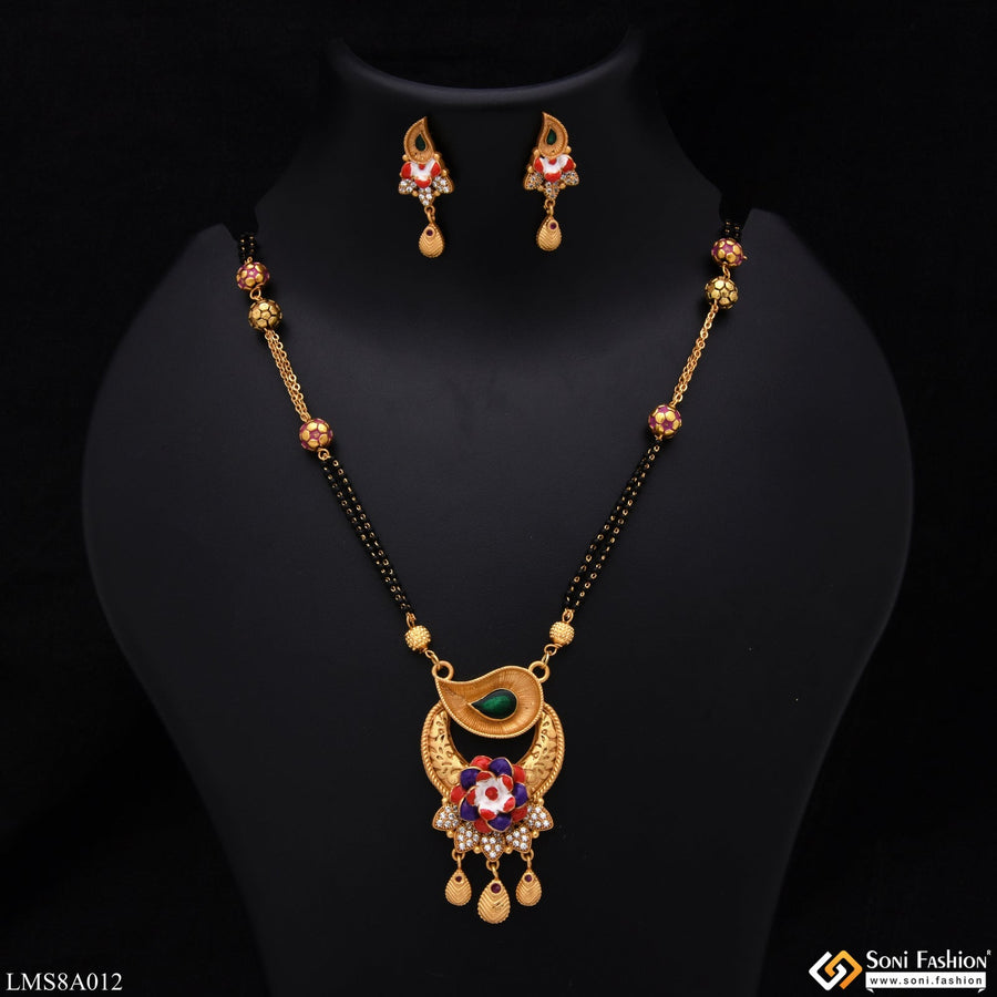 Flower With Diamond Gold Plated Mangalsutra Set For Women - Style Lmsa012