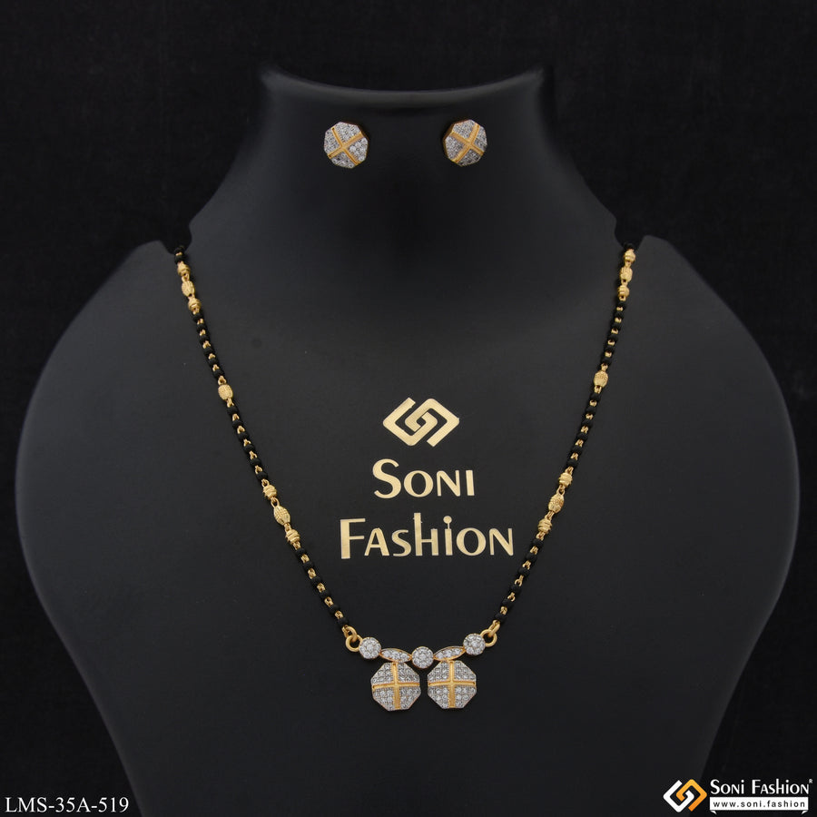 1 Gram Gold Plated with Diamond Chic Design Mangalsutra Set for Women - Style A507