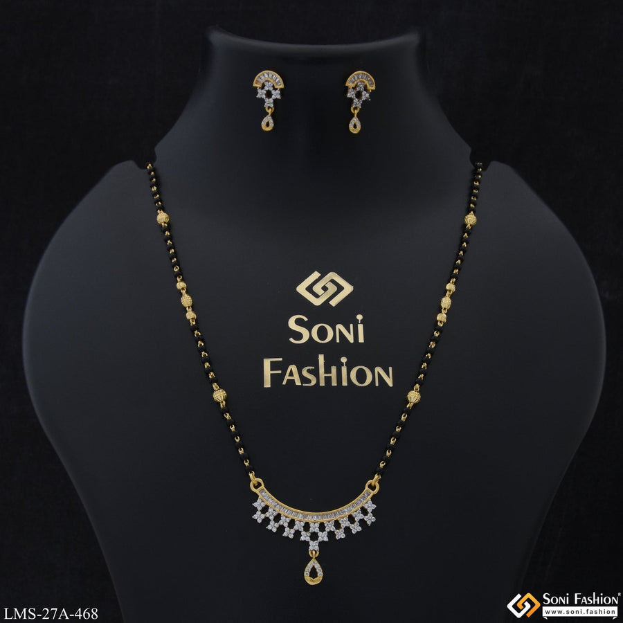 1 Gram Gold Plated With Diamond Latest Design Mangalsutra Set For Women - Style A219