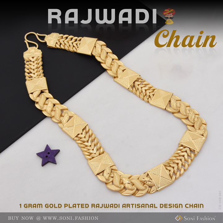1 Gram Gold Forming 2 In 1 Rajwadi Artisanal Design Gold Plated Chain - Style B567