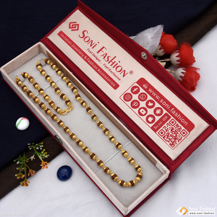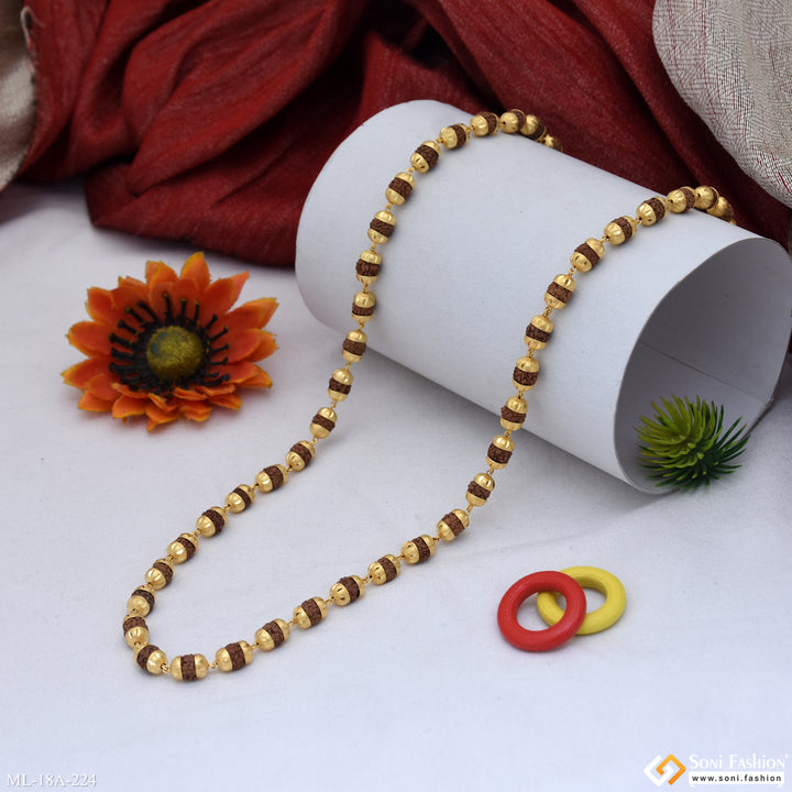 1 Gram Gold Forming V Cut Artisanal Design Rudraksha Mala for Men - Style A224