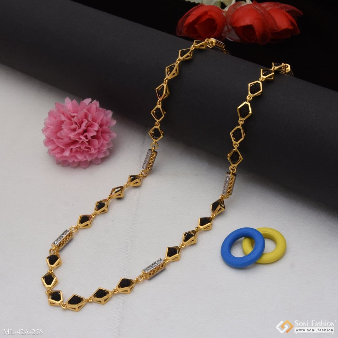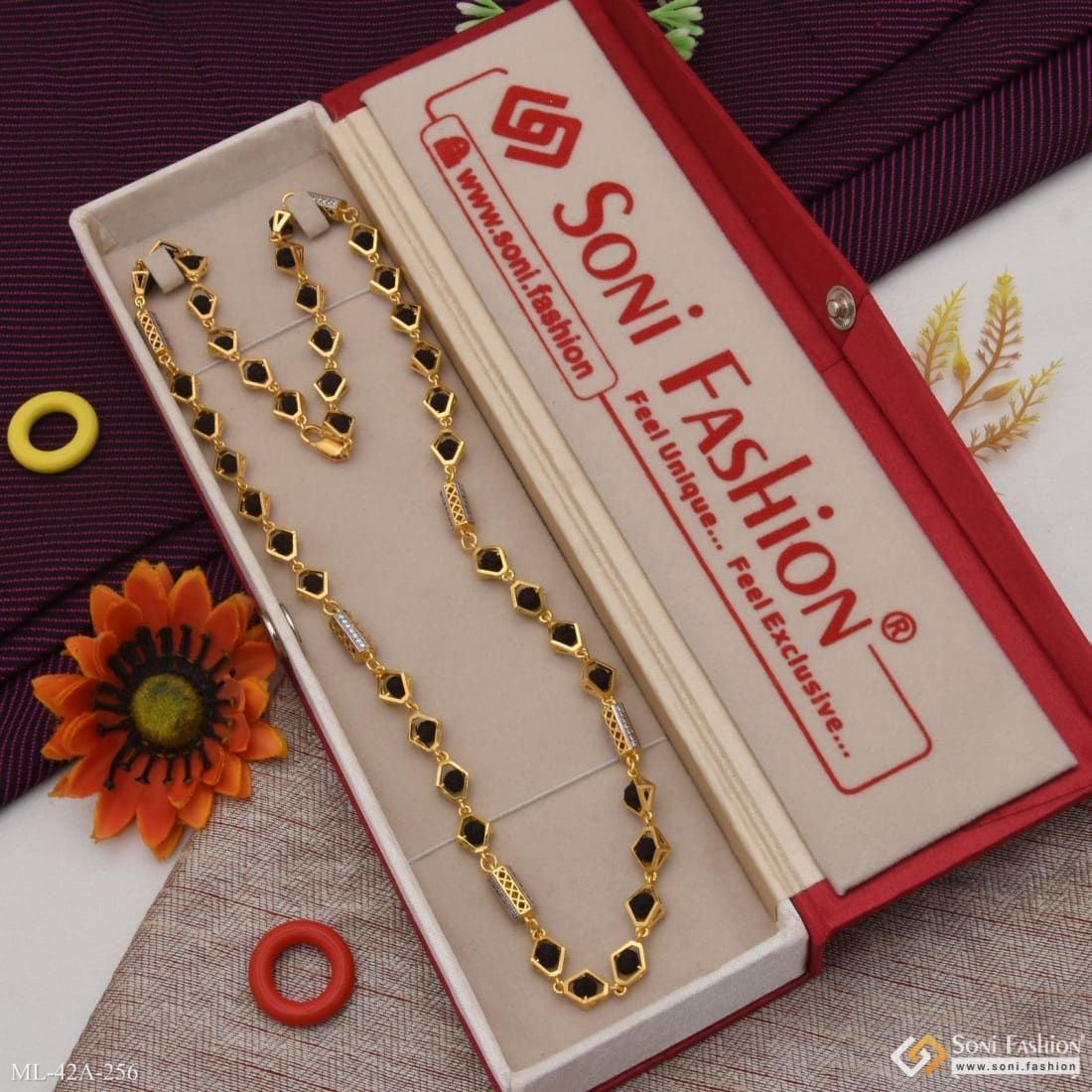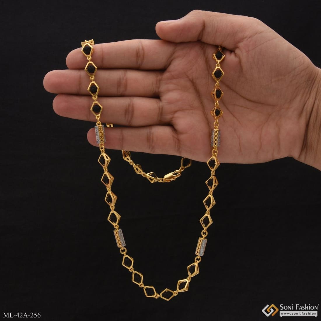 This 1 Gram Gold Forming Etched Design High-Quality Rudraksha Mala for Men is crafted from the highest quality materials, making it ideal for special occasions. Featuring a textured, shining finish, this...