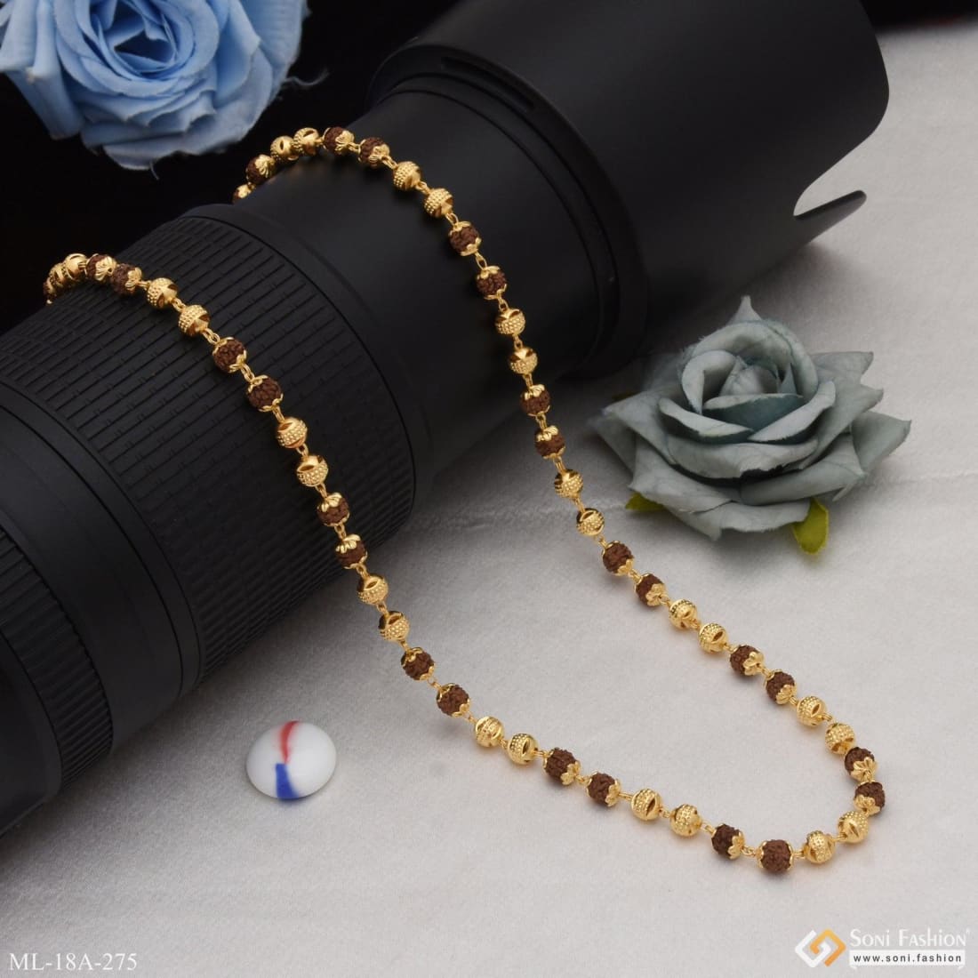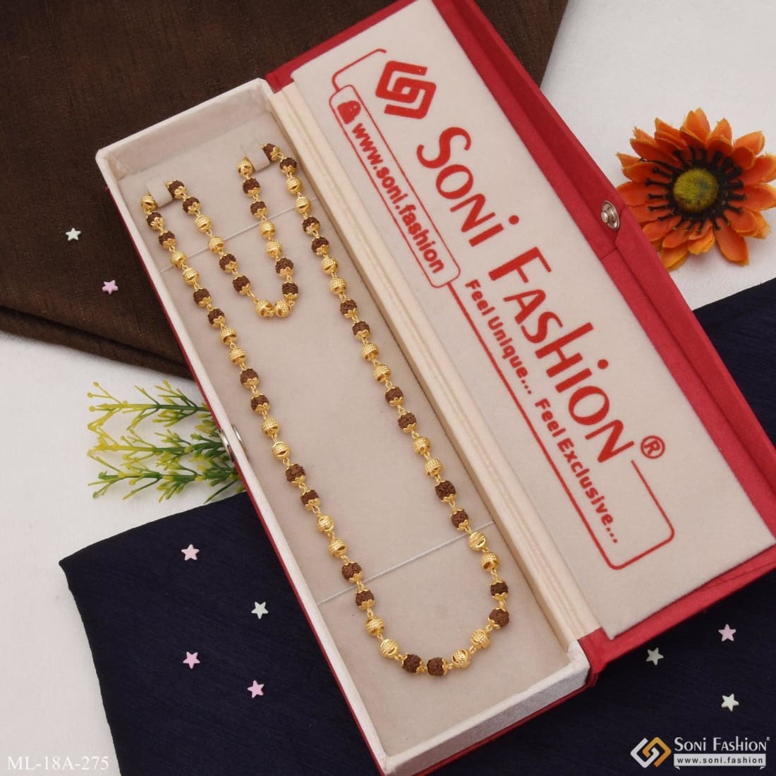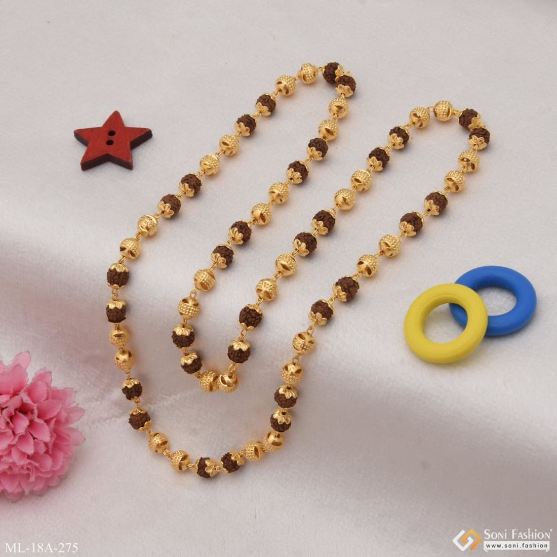 1 Gram Gold Plated High-Quality Rudraksha Mala for Men - Style A275