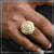 This stunning 1 Gram Gold Forming Goga with Diamond Fashionable Design Gold Plated Ring has vintage, textured, shining, round, rhodium, religious, Rajwadi, and miligram gold features. Its brass construction is beautifully adorned with a diamond for a luxe look. Perfect for a groom who appreciates timeless style.