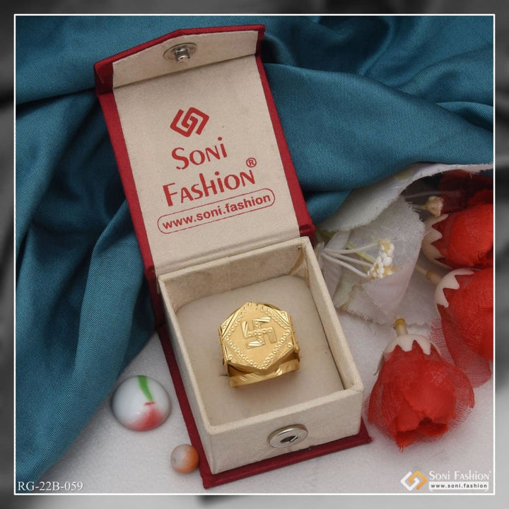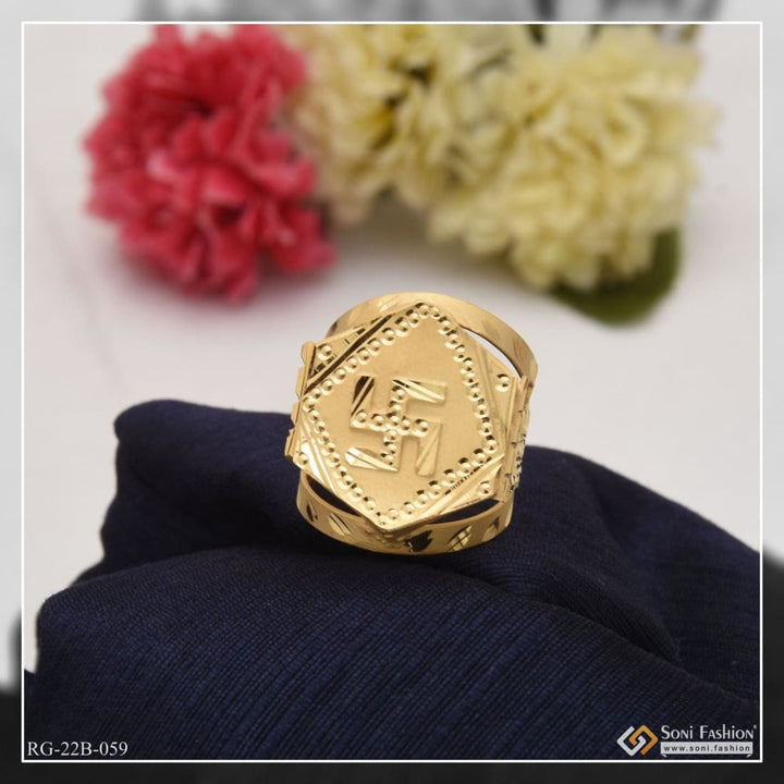 1 Gram Gold Forming Swastik Etched Design High-Quality Ring for Men - Style B059