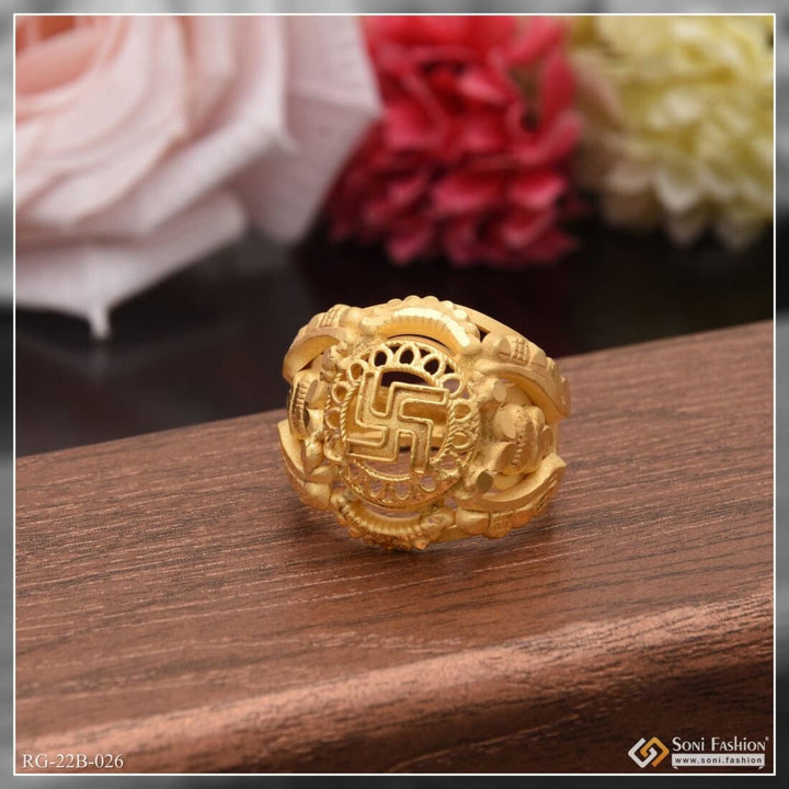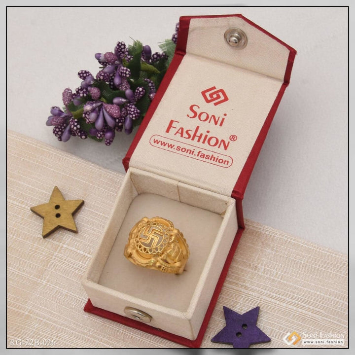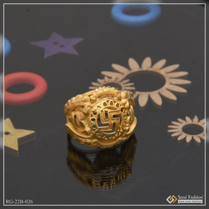 1 Gram Gold Forming Swastik Fancy Design High-quality Ring For Men - Style B026