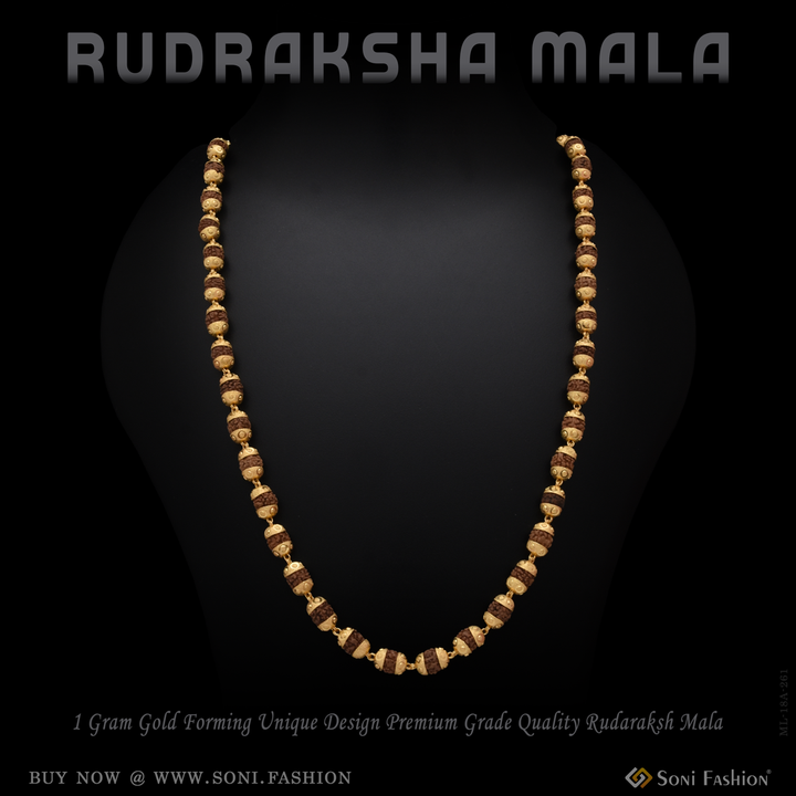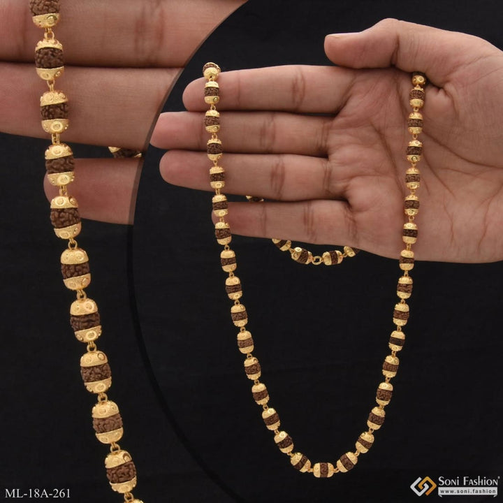 1 Gram Gold Plated Unique Design Rudraksha Mala for Men - Style A261