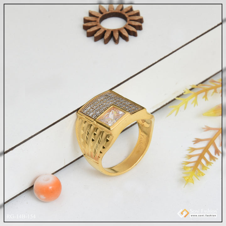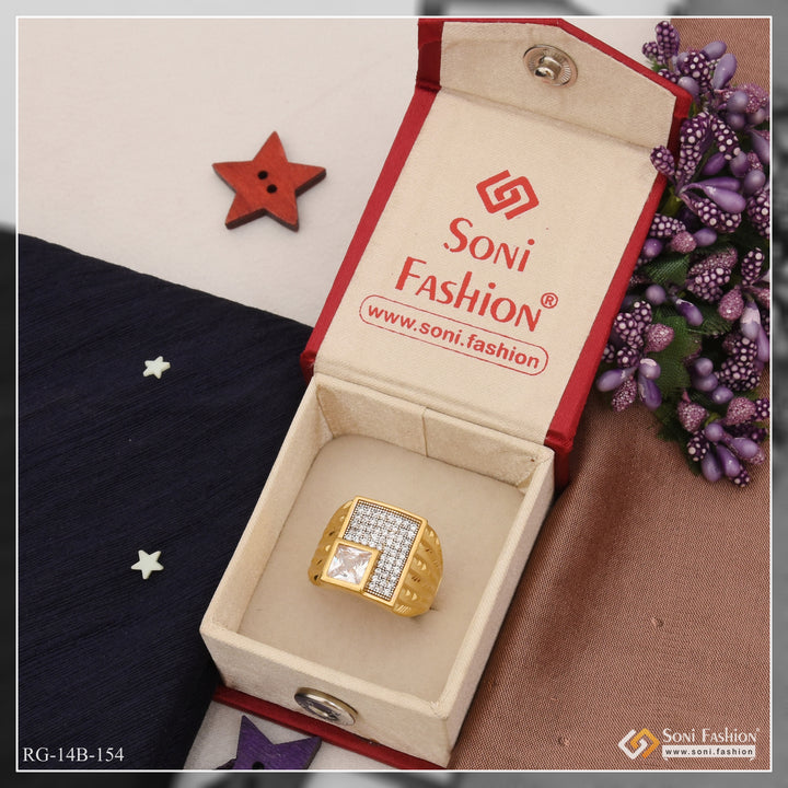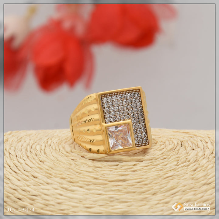 1 Gram Gold Forming White Stone With Diamond Funky Design Ring For Men - Style B154
