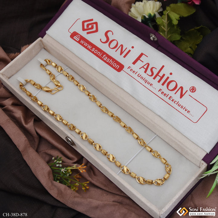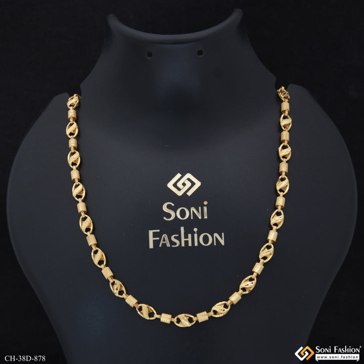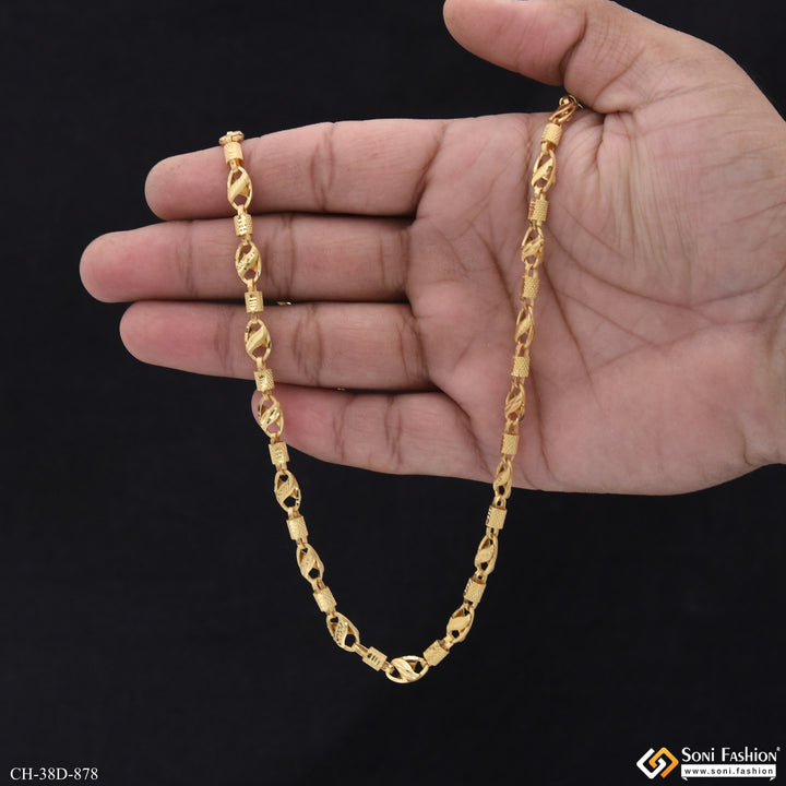 This 1 Gram Gold Plated Kohli Chain for men features a royal filigree design crafted in brass with a matt finish. Measuring 20 inches, this shining golden chain combines style and...