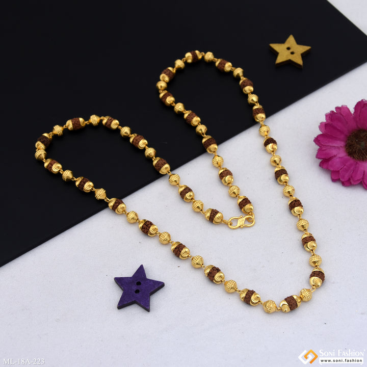 1 Gram Gold Plated 2 in 1 Delicate Design Rudraksha Mala for Men - Style A223