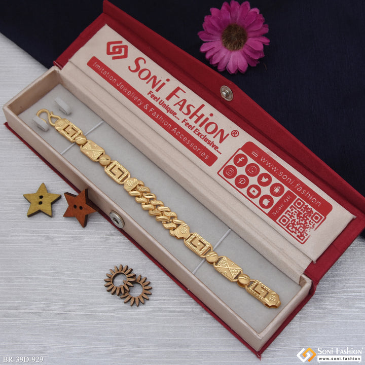 1 Gram Gold Plated 2 In 1 Nawabi Pokal Bracelet for Men - Style D929