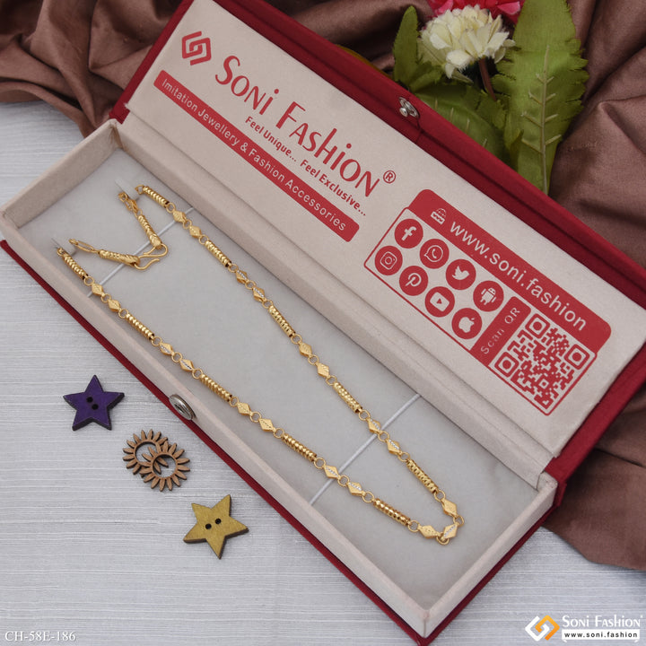1 Gram Gold Plated 2 In 1 Pipe Chain for Men - Style E186