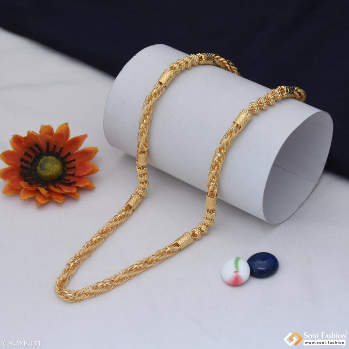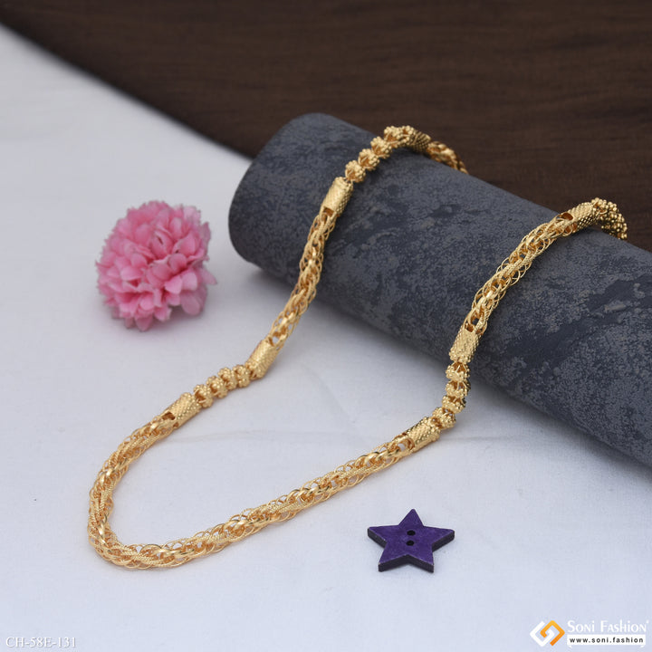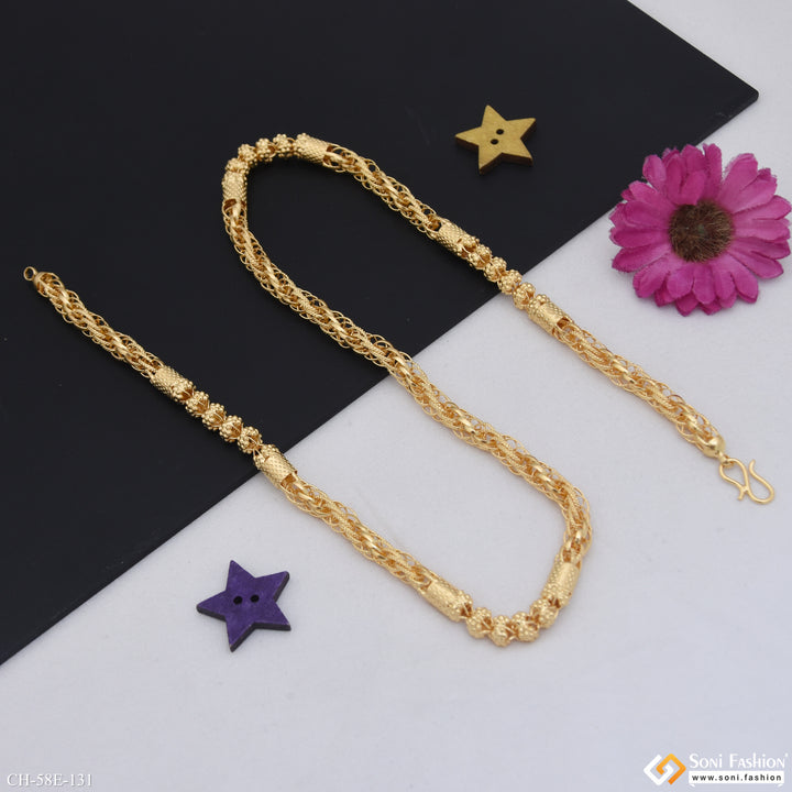 This 1 Gram Gold Plated Rassa Chain combines traditional Rajwadi design with modern style, crafted from durable brass with a golden finish. Measuring 22 inches, this shining chain offers a classic look perfect for men seeking an elegant accessory. Its lightweight yet sturdy construction ensures comfortable daily wear while adding a refined touch to any outfit. The 2-in-1 design provides versatile styling options, making it a valuable addition to your collection.