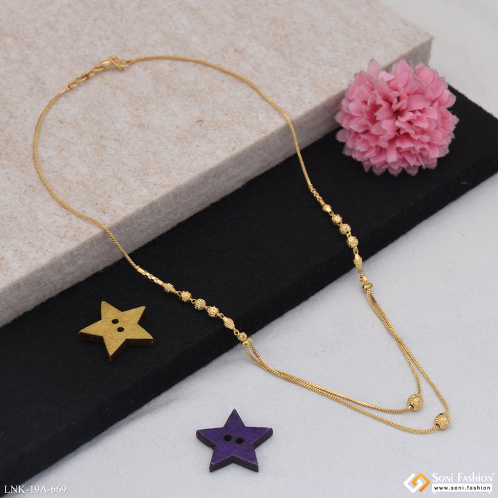 This 1-gram gold-plated artisanal necklace combines elegant design with lasting shine. Crafted from durable brass and finished with miligram gold plating, it offers a lightweight, stylish accessory perfect for everyday wear or special occasions. Add a subtle golden touch to any outfit with this finely crafted statement piece.