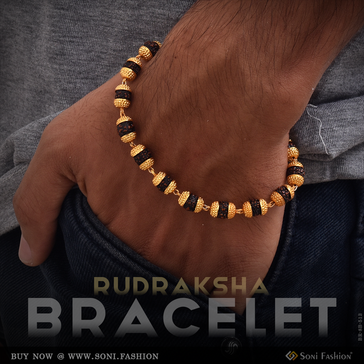 1 Gram Gold Plated Sophisticated Design - Rudraksha Bracelet for Men - Style B513
