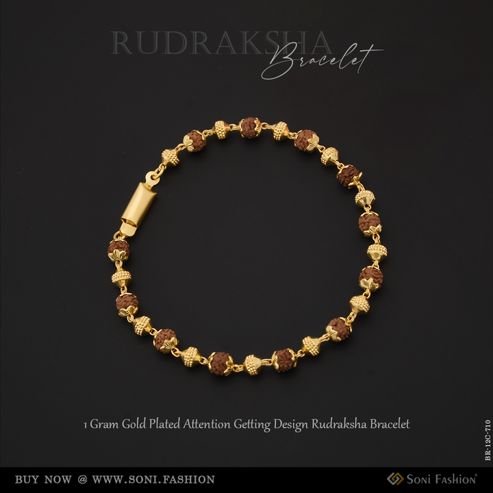 1 Gram Gold Plated Attention-Getting Design Rudraksha Bracelet for Men - Style C710