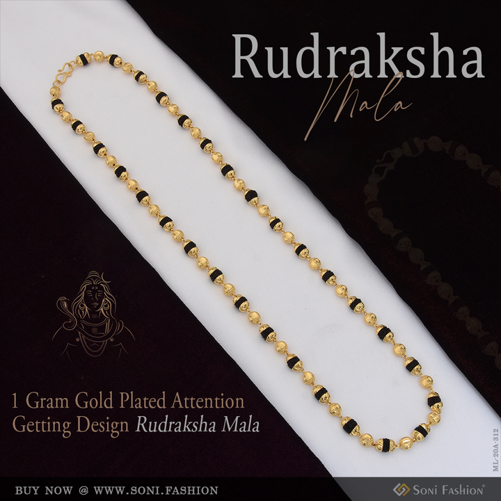 1 Gram Gold Plated Attention-Getting Design Rudraksha Mala for Men - Style A312