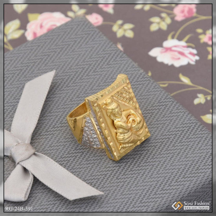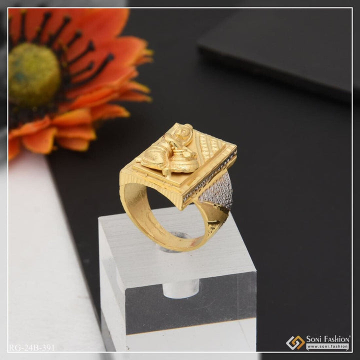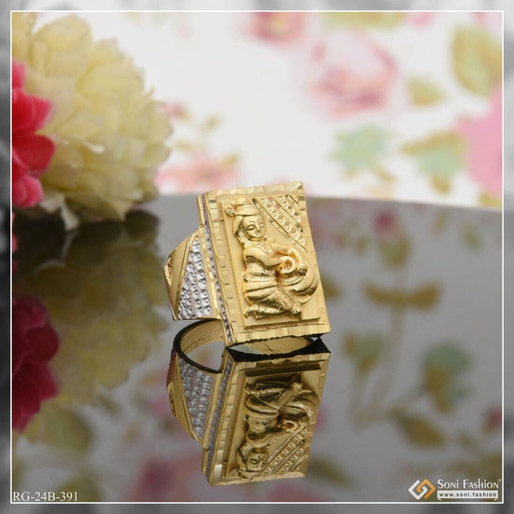 1 Gram Gold Plated Bal Krishna Etched Design High-quality Ring For Men - Style B391