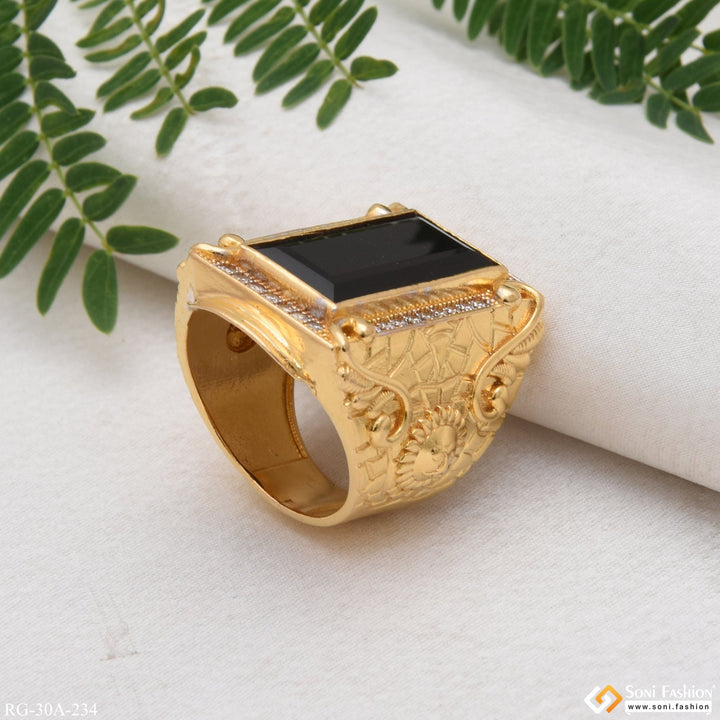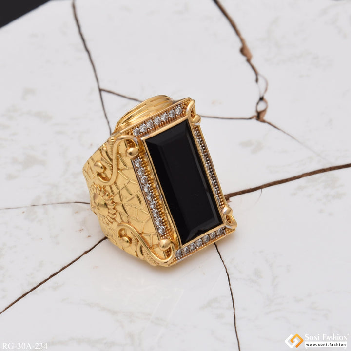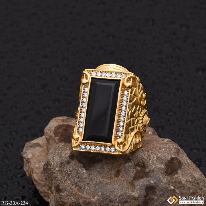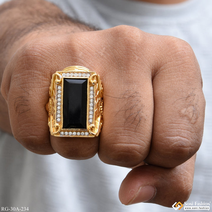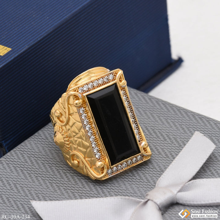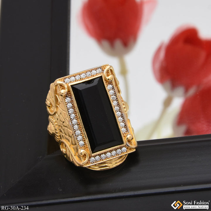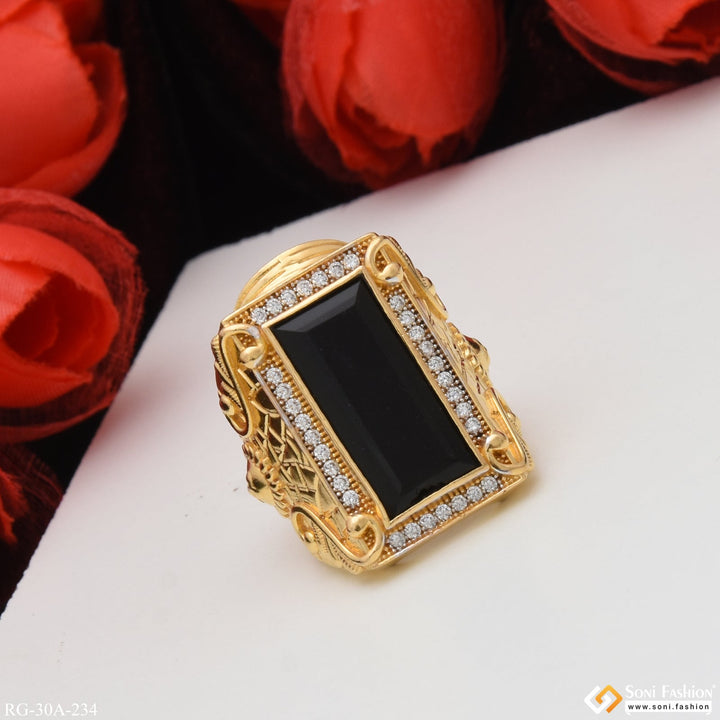 1 Gram Gold Plated Black Stone with Diamond Best Quality Ring - Style A234
