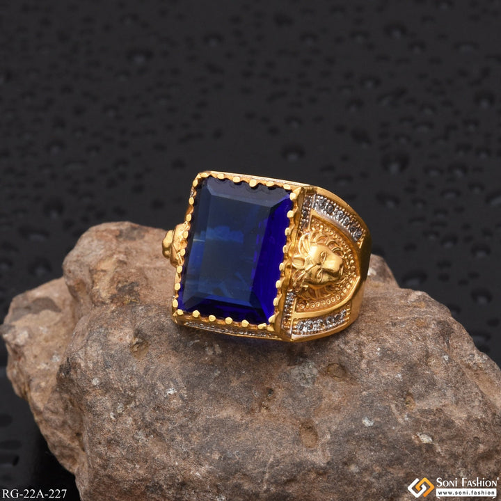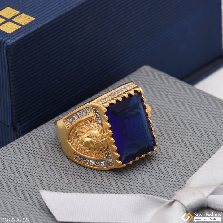 1 Gram Gold Plated Blue Stone with Diamond Gorgeous Design Ring - Style A227
