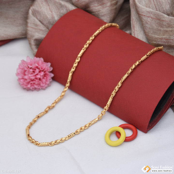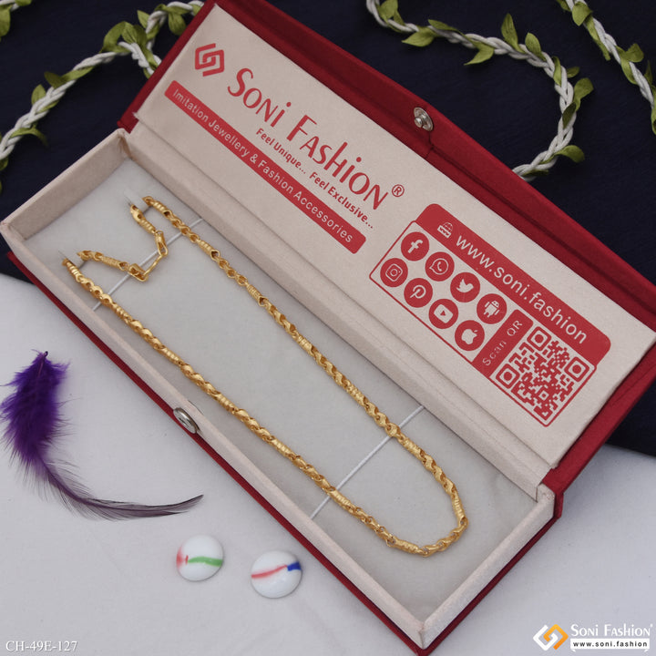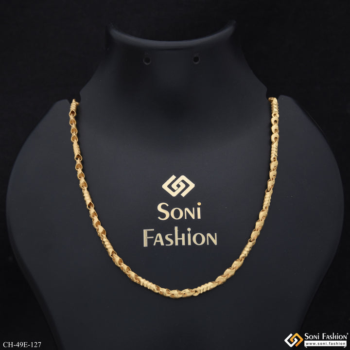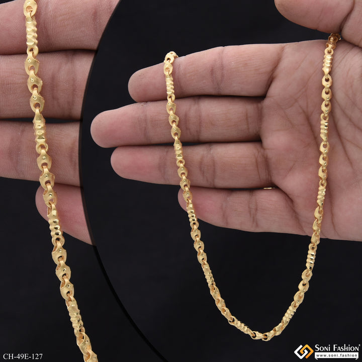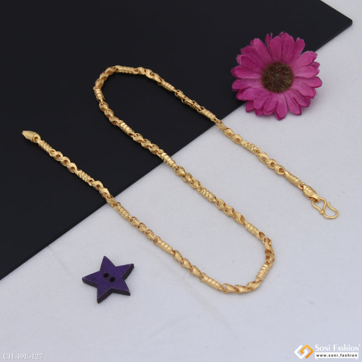 This 20-inch men's chain features a royal filigree design in a shining, matt gold finish. Crafted from brass and plated with 1 gram of gold, it offers a stylish yet durable accessory perfect for everyday wear or special occasions. Its elegant look adds a subtle touch of sophistication to any outfit.