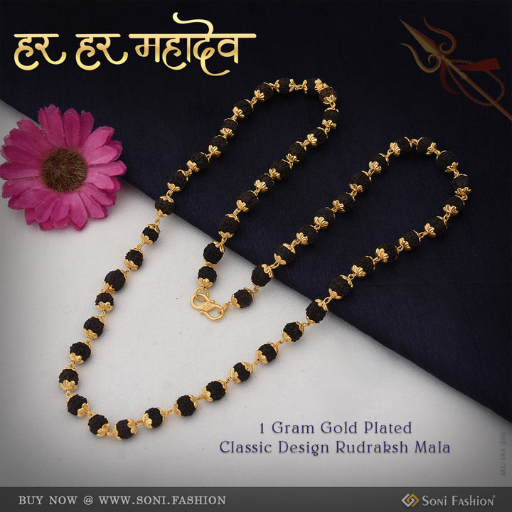 1 Gram Gold Plated Classic Design Rudraksha Mala for Men - Style A295