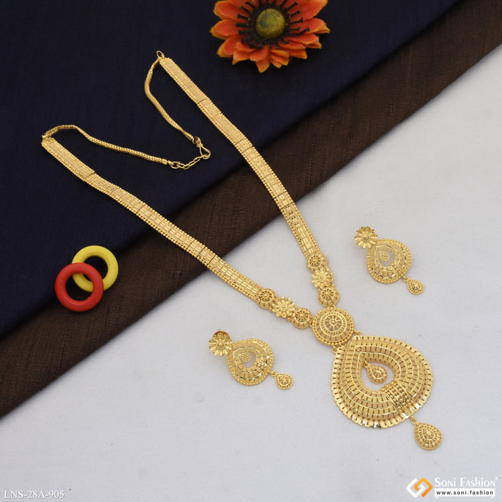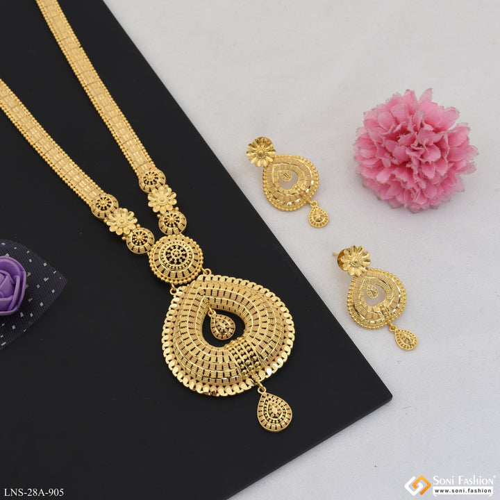 1 Gram Gold Plated Decorative Design Rani Haar Necklace Set for Women - Style A905