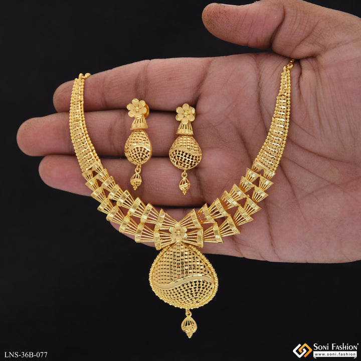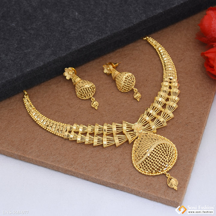 1 Gram Gold Plated Designer Necklace Set for Women - Style B077