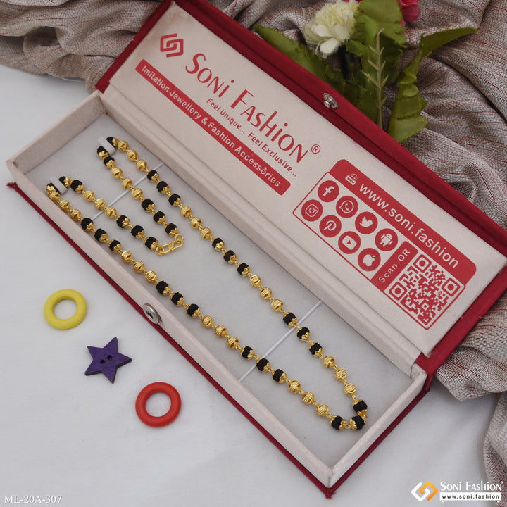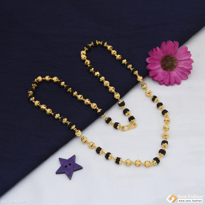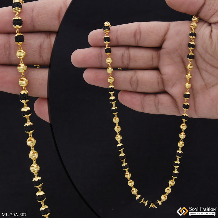 1 Gram Gold Plated Etched Design High-quality Rudraksha Mala For Men - Style A307