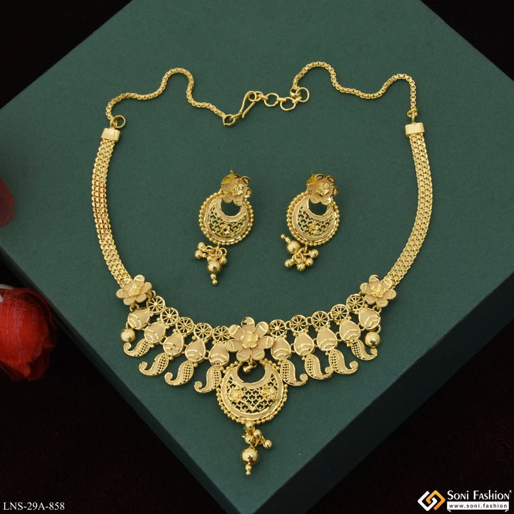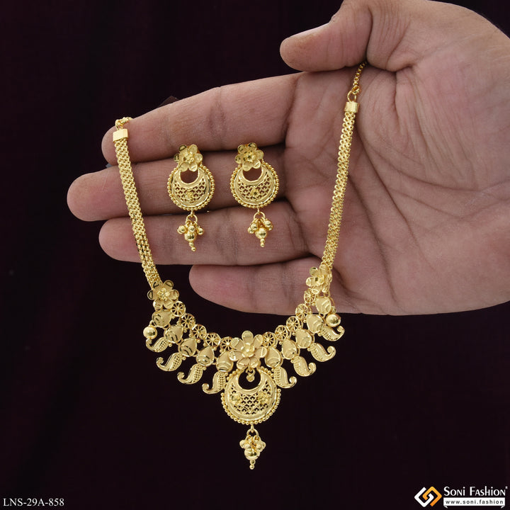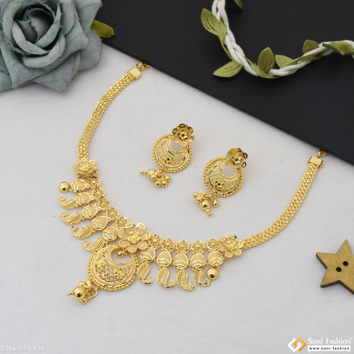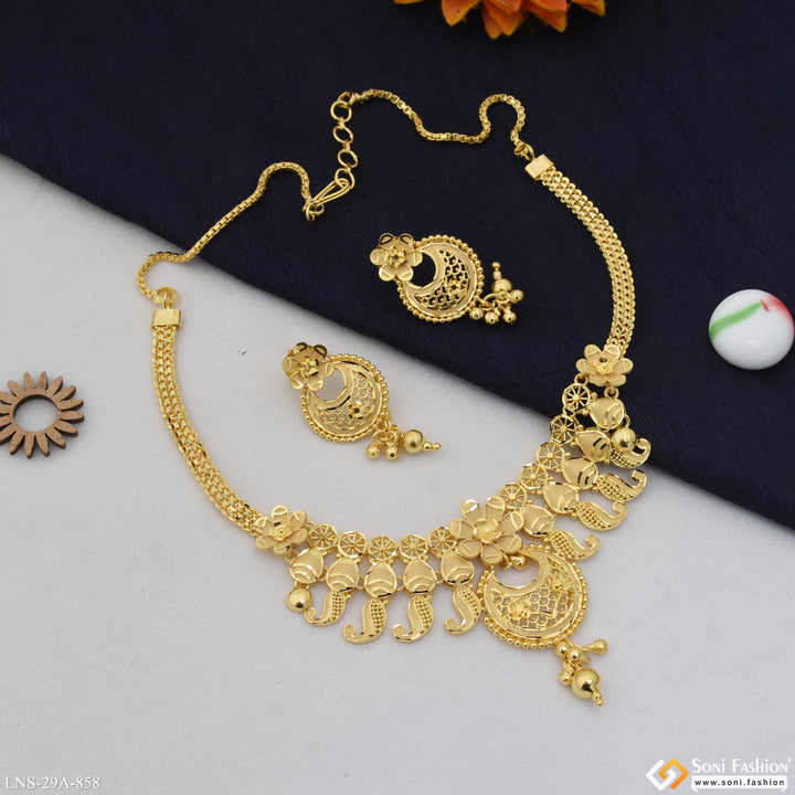 1 Gram Gold Plated Fancy Design Necklace Set for Women - Style A858