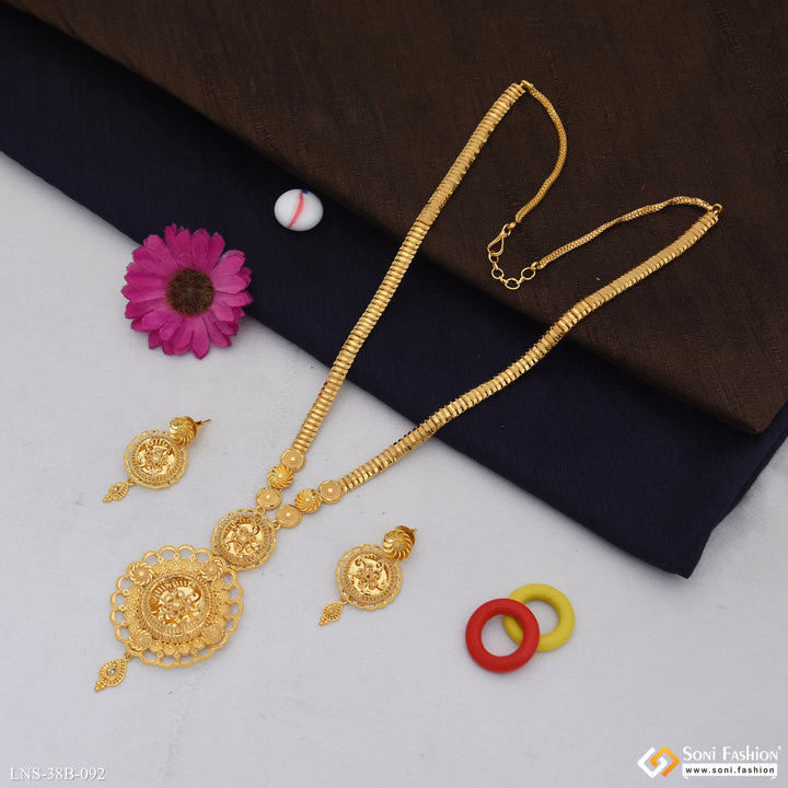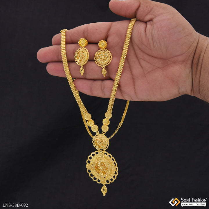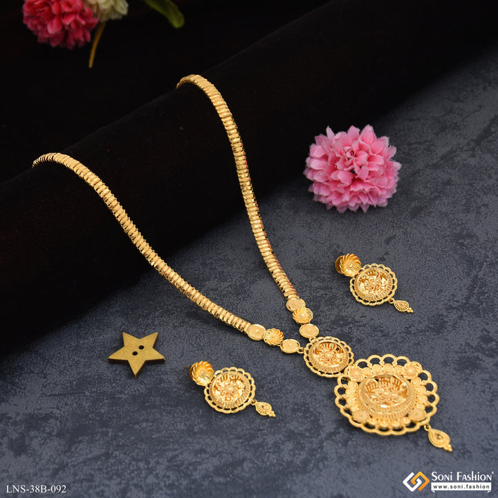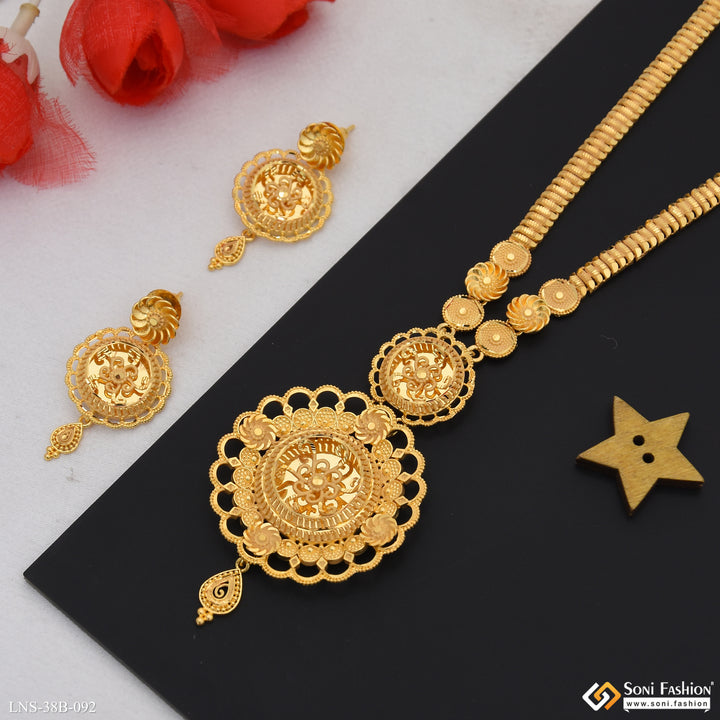 1 Gram Gold Plated Fancy Design Rani Haar Necklace Set for Women - Style B092