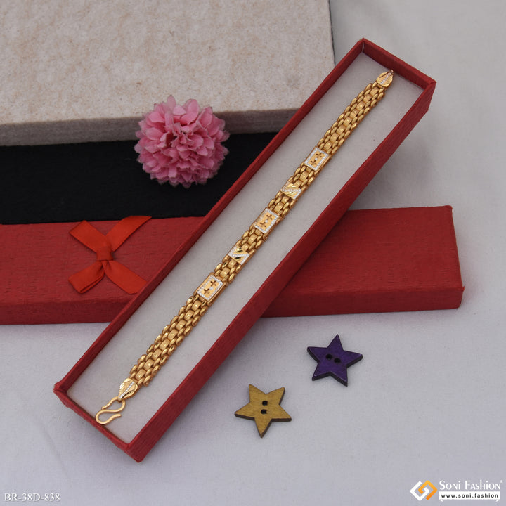 1 Gram Gold Plated Fashionable Design Box Bracelet for Men - Style D838