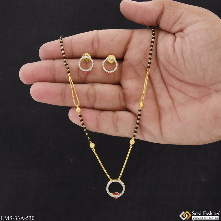1 Gram Gold Plated Finely Detailed Mangalsutra Set for Women - Style A530