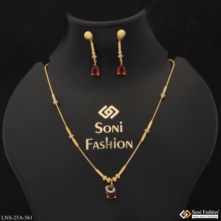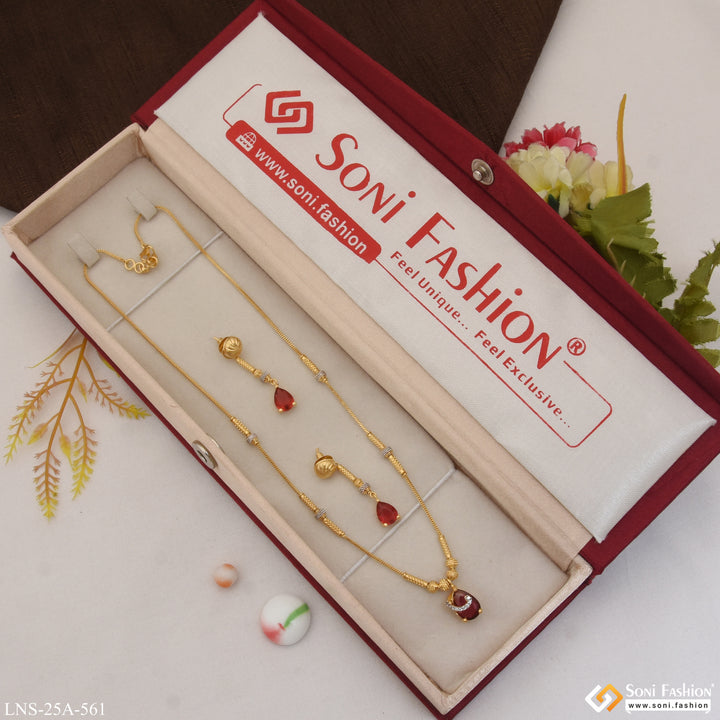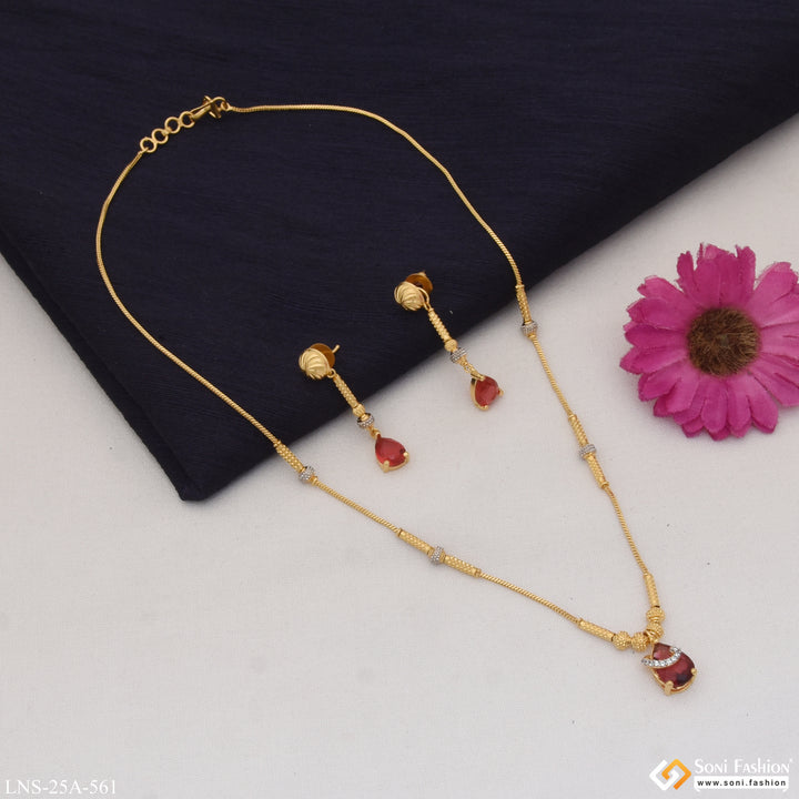 1 Gram Gold Plated Glittering Design Necklace Set for Ladies - Style A561