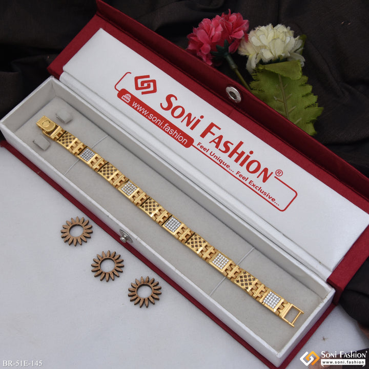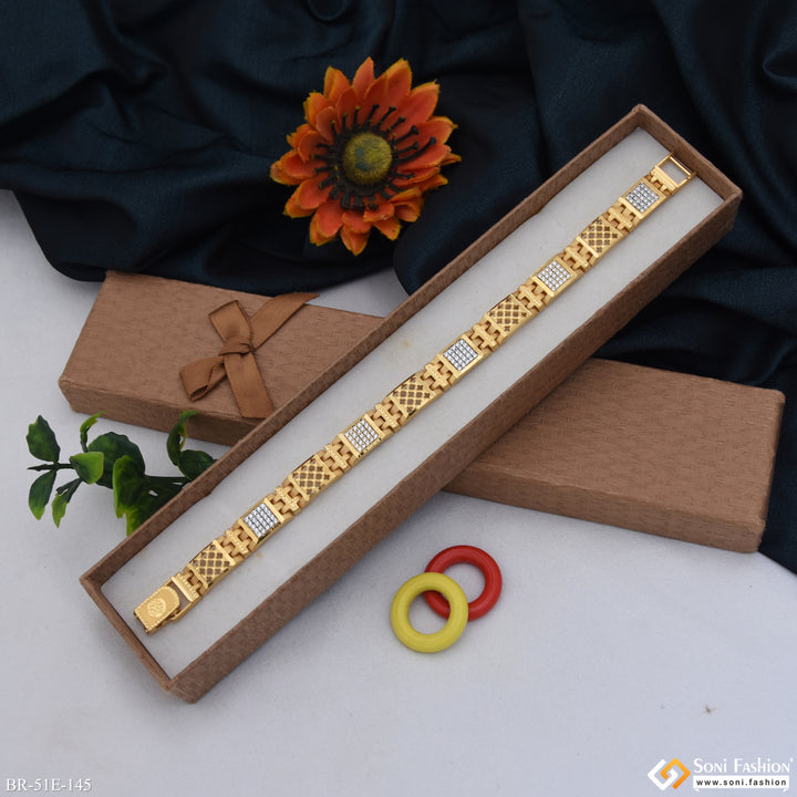 1 Gram Gold Plated Gorgeous Design Bracelet for Men - Style E145