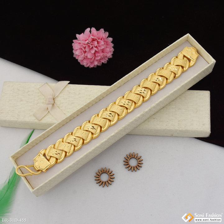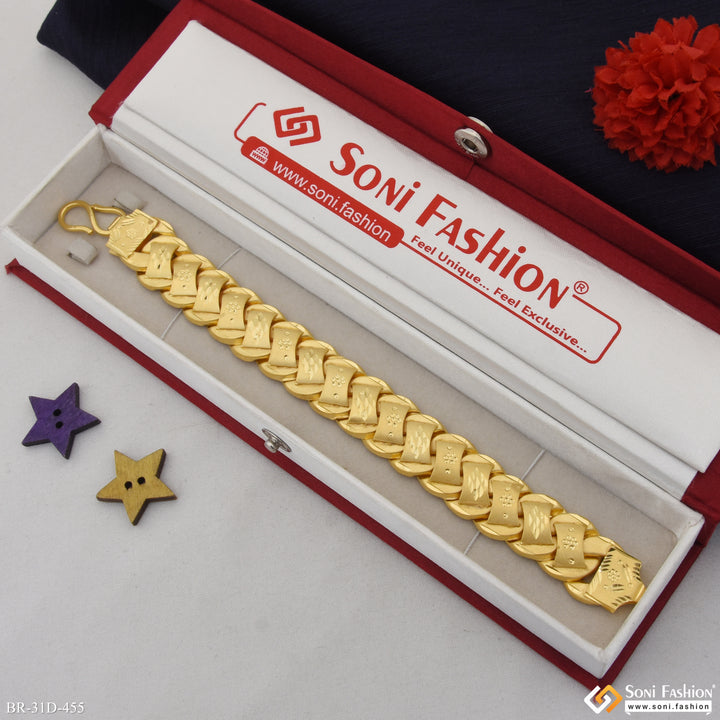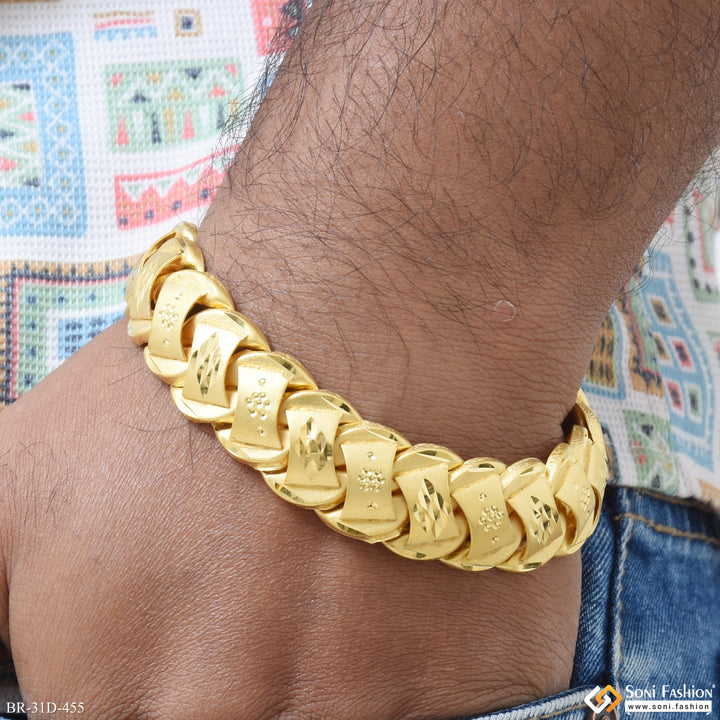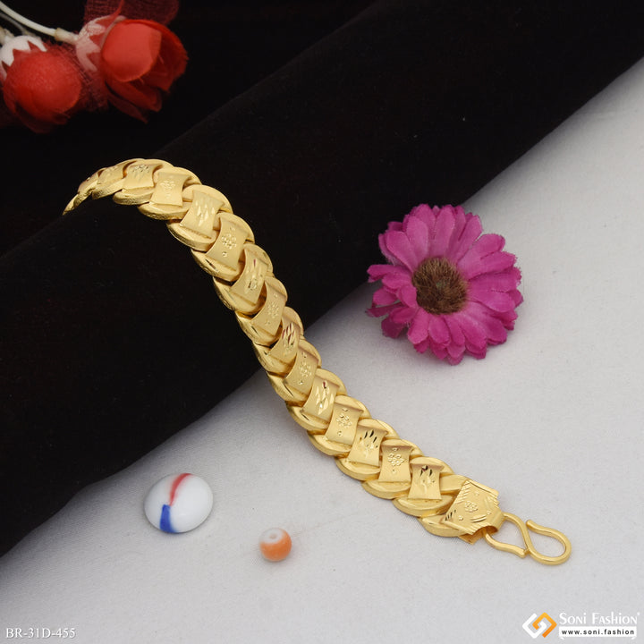 Get ready to shine with our 1 Gram Gold Plated Gorgeous Design Pokal Bracelet for Men. Crafted with precision and style, this royal bracelet features a stunning filigree design and a...