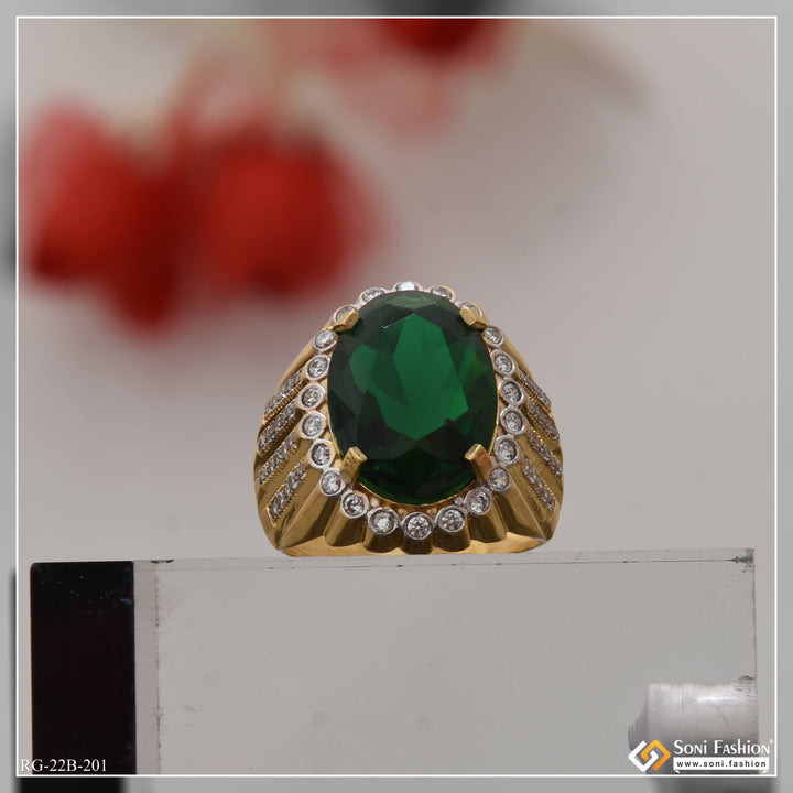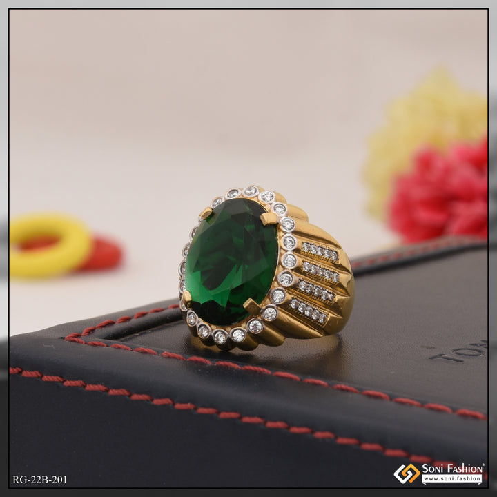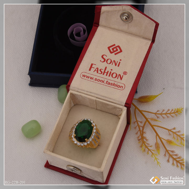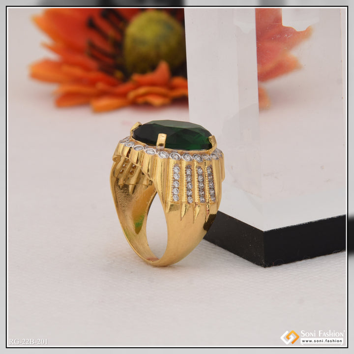 1 Gram Gold Plated Green Stone with Diamond Best Quality Ring for Men - Style B201