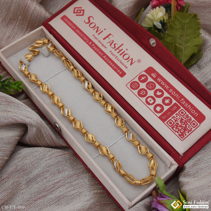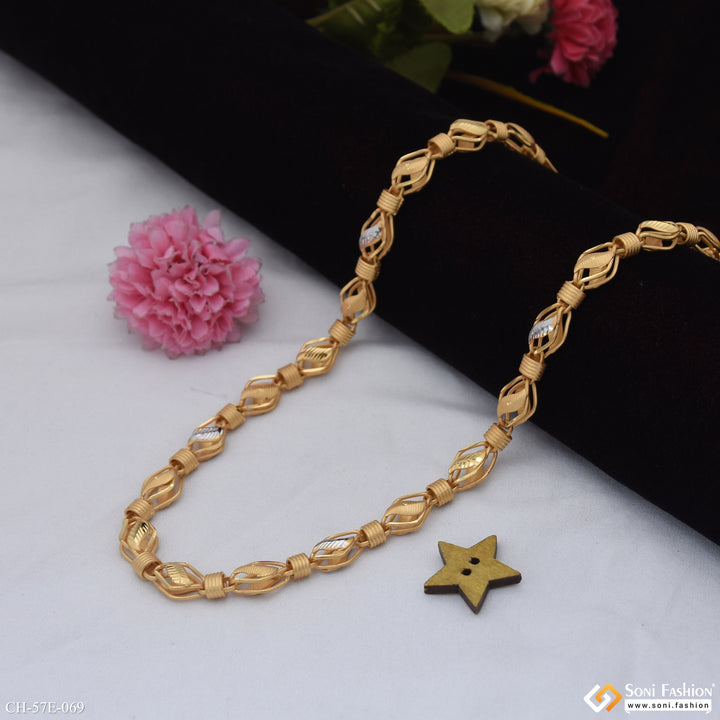 1 Gram Gold Plated Hand-Crafted Design Kohli Chain for Men - Style E069
