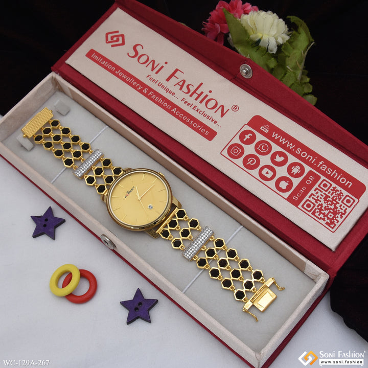 1 Gram Gold Plated Hand-Crafted Design Watch for Men - Style A267