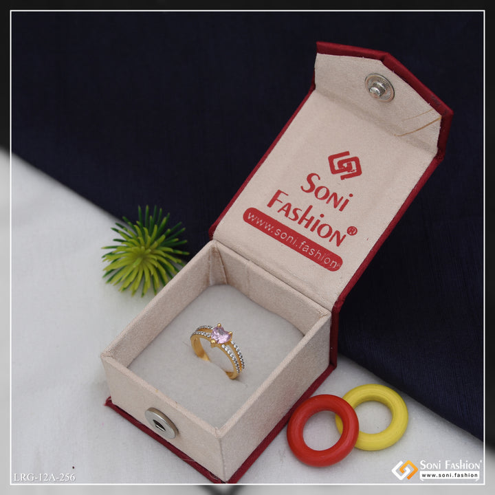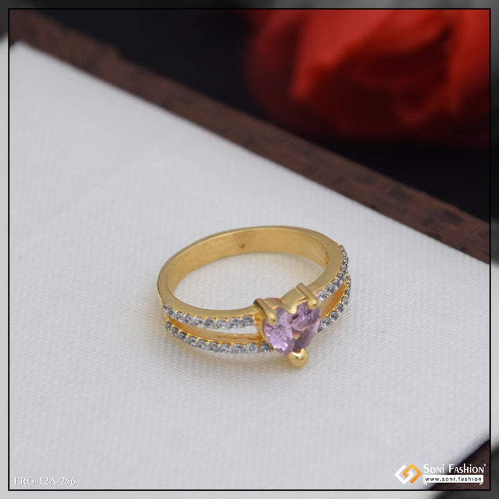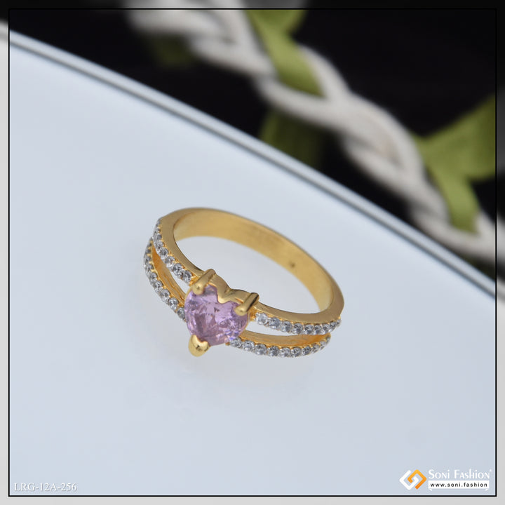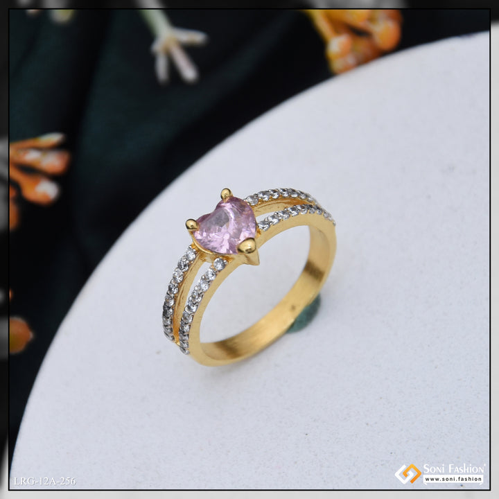 1 Gram Gold Plated Heart Shape Diamond Ring for Ladies - Style A256