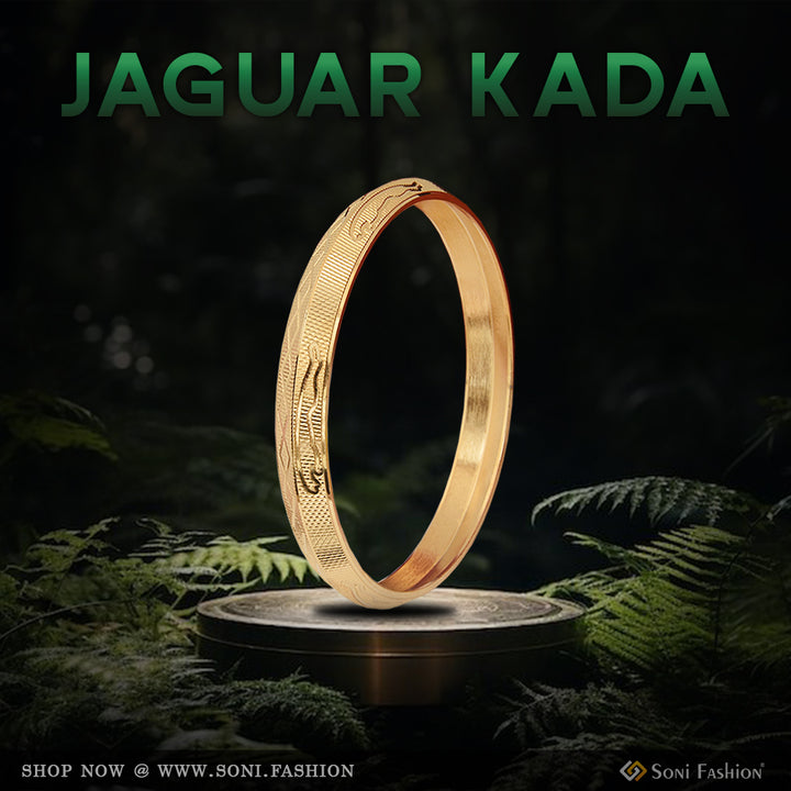 1 Gram Gold Plated Jaguar Delicate Design Punjabi Kada for Men - Style B137